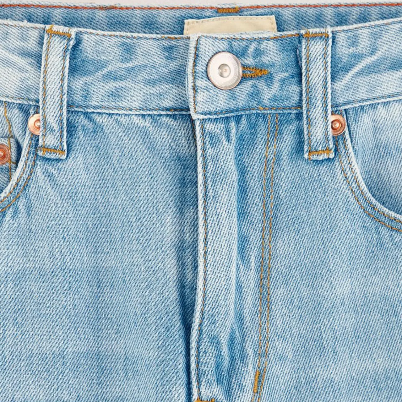 Jean décontracté à jambes larges en denim de coton délavage light stonewash 5 poches