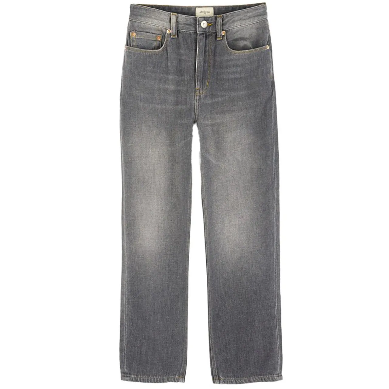 Jean décontracté à jambes larges en denim de coton used grey 5 poches