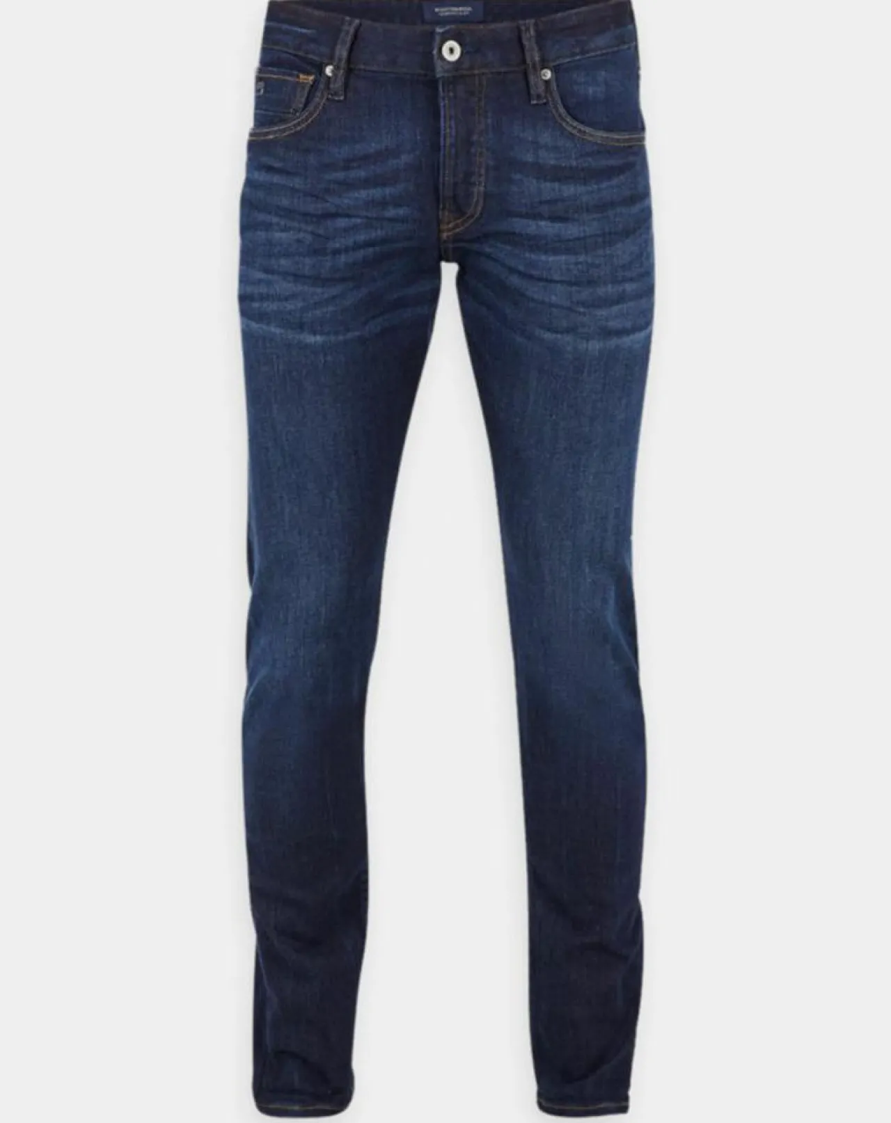 Ce jean Scotch&Soda en coton stretch, à la taille standard, légèrement délavé à certains endroits et à la coupe ajustée, propose une ceinture ornée d’un bouton suivie d’une patte de boutonnage, de 2 poches cavalières, 1 poche ticket et de plis sur le haut des cuisses et de 2 poches plaquées au dos.