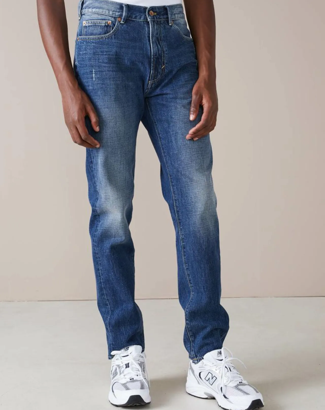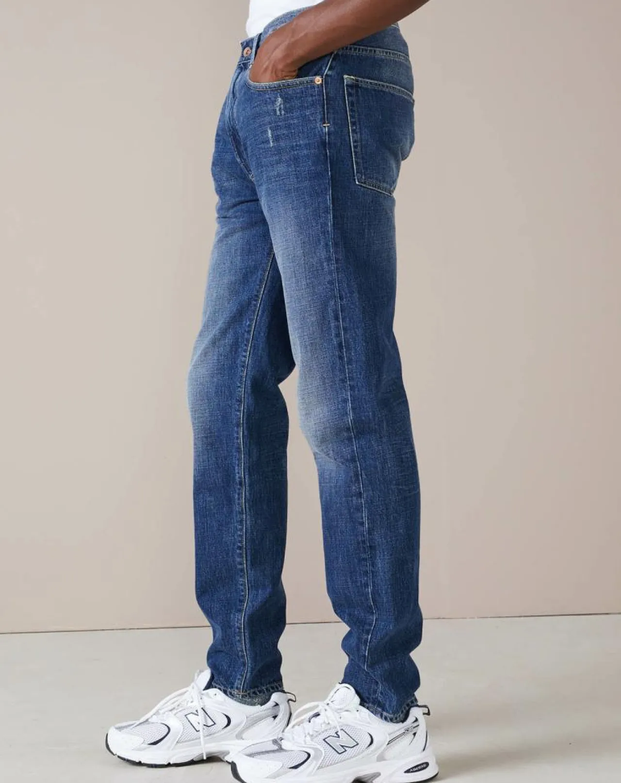 Slim sans être trop serré, taille plus haute sans aller jusqu’au bout, avec des jambes fuselées
