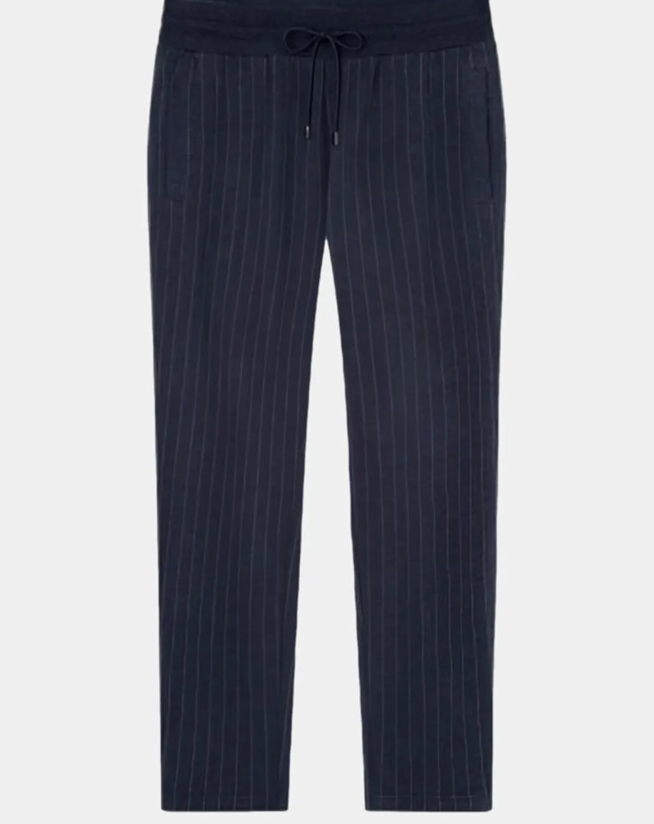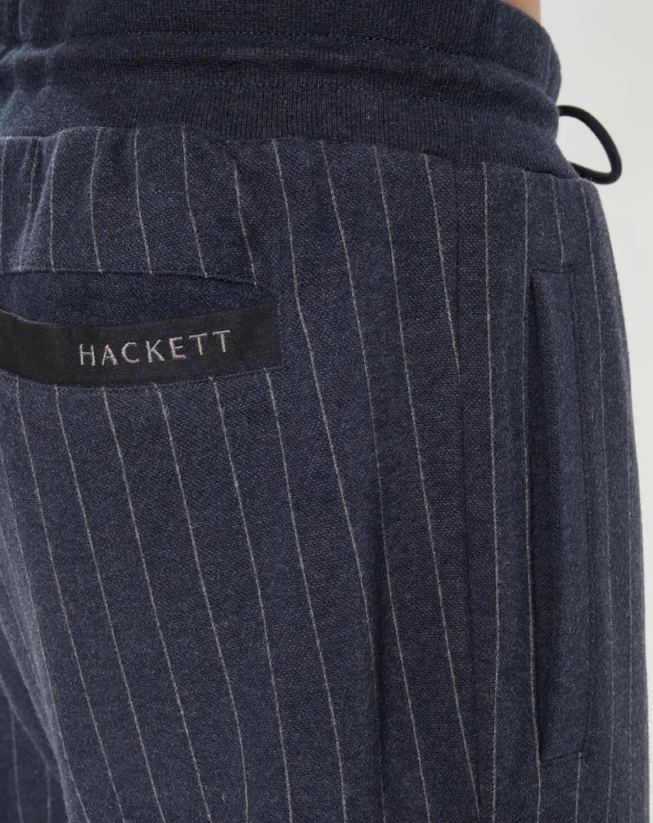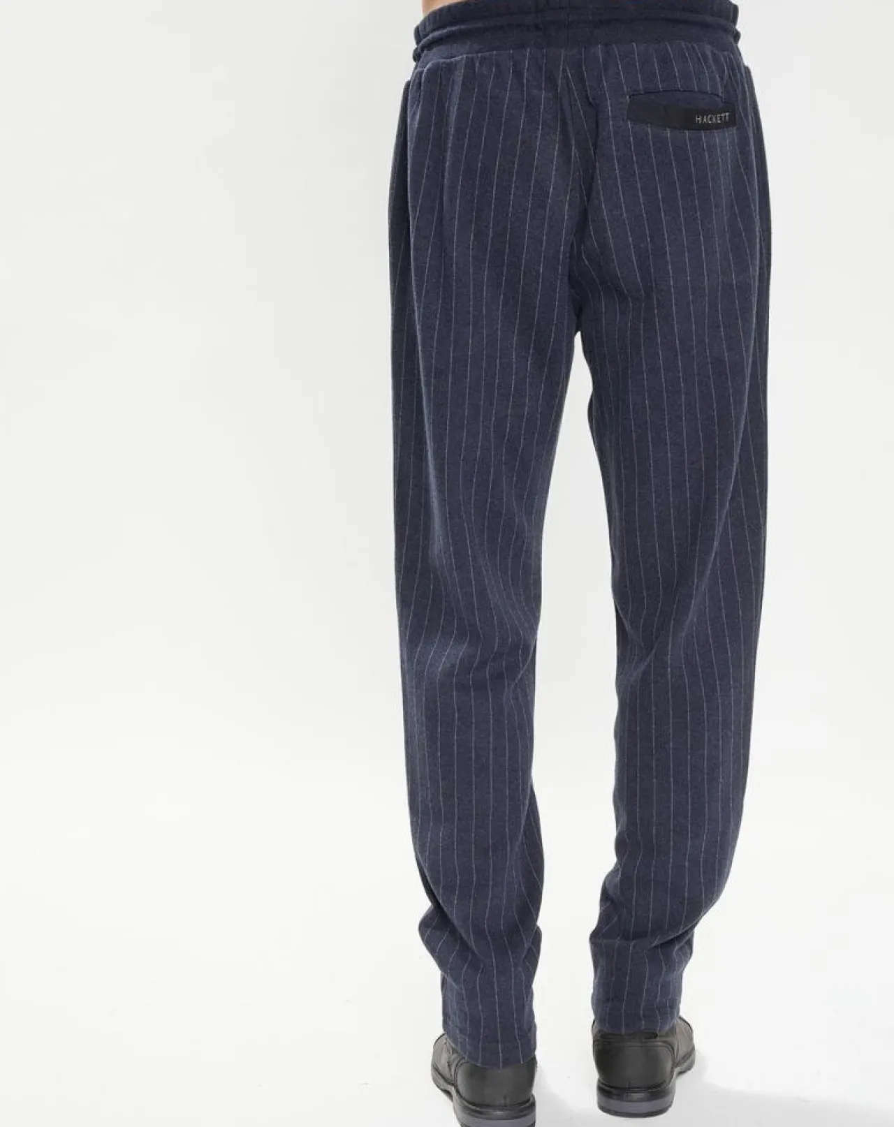Ce jogging droit Hackett London en coton à fines rayures, se pare de 2 poches latérales devant, d’une poche arrière et d’une taille élastique avec lien de serrage.