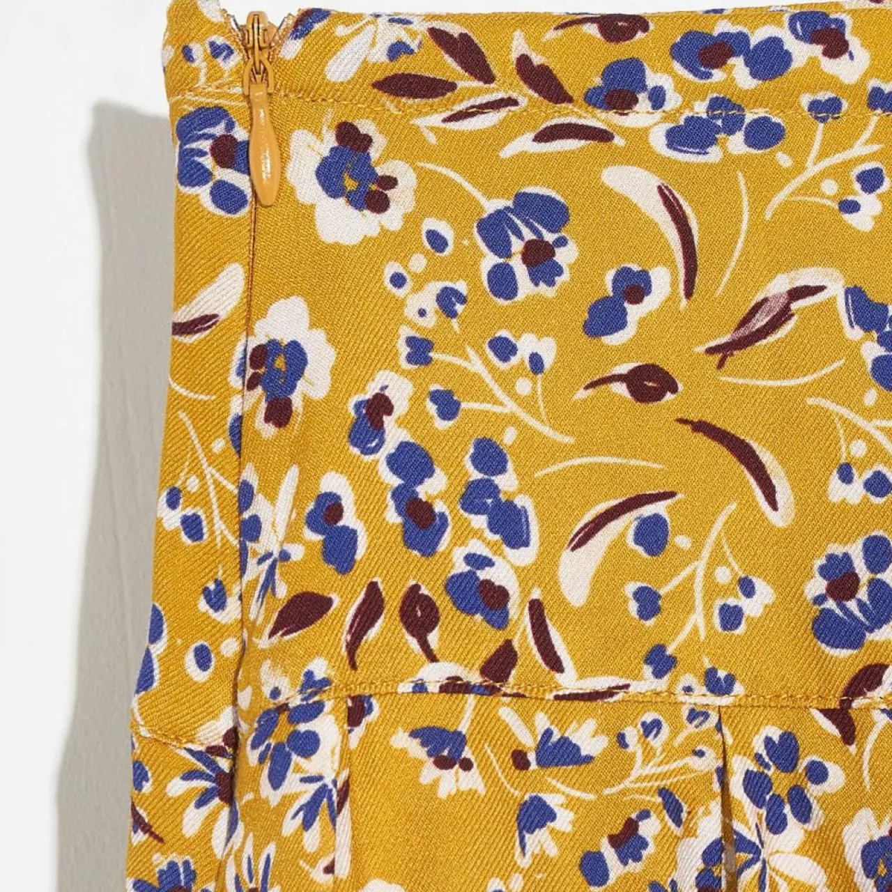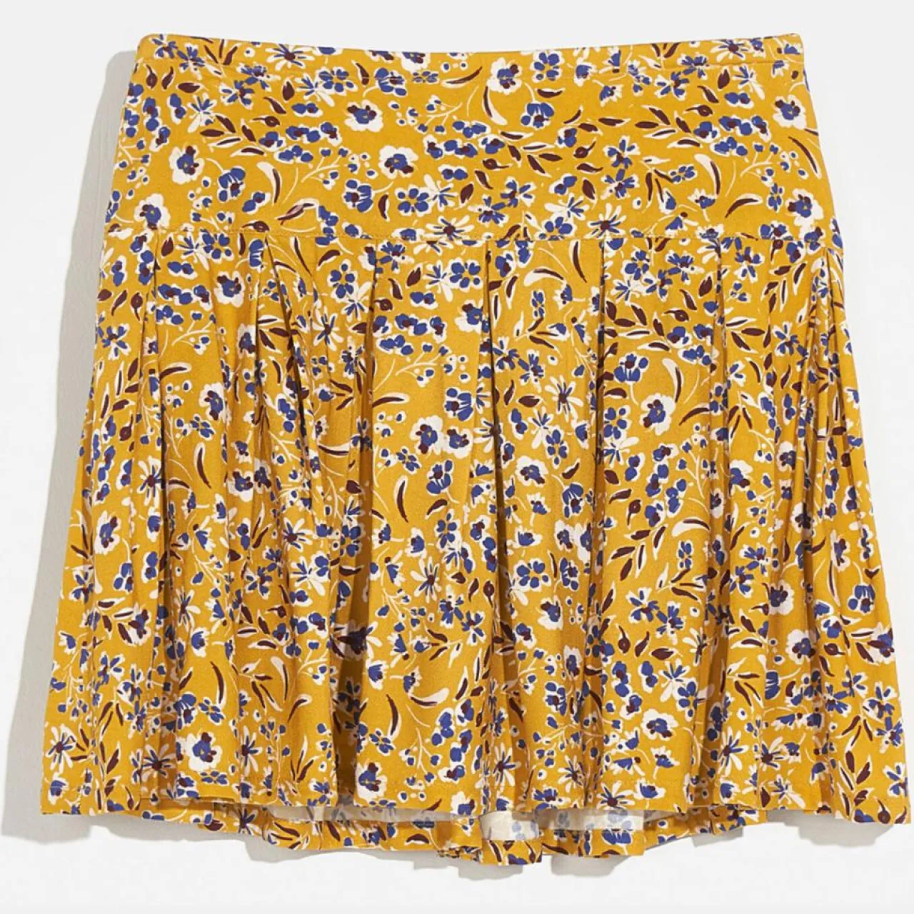 Confectionnée en pure viscose EcoVero, elle assume un style plein de poésie avec un imprimé liberty à petites fleurs, une longueur mini, une large ceinture et un esprit espiègle ! La jupe parfaite à associer à un pull col roulé, des collants en polaire et une paire de Dr. Martens pour un look d’automne audacieux.