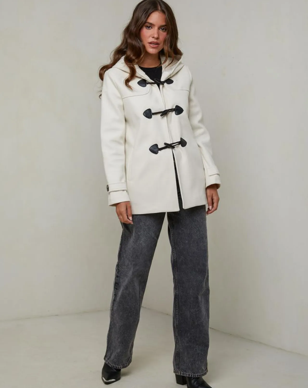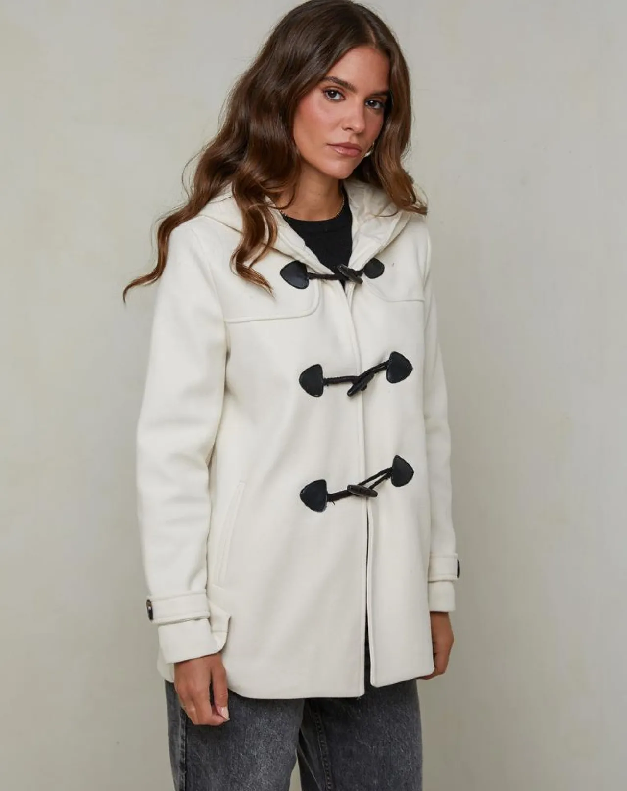 Manteau court à capuche, fermeture à tache avec deux poches sur les côtés
