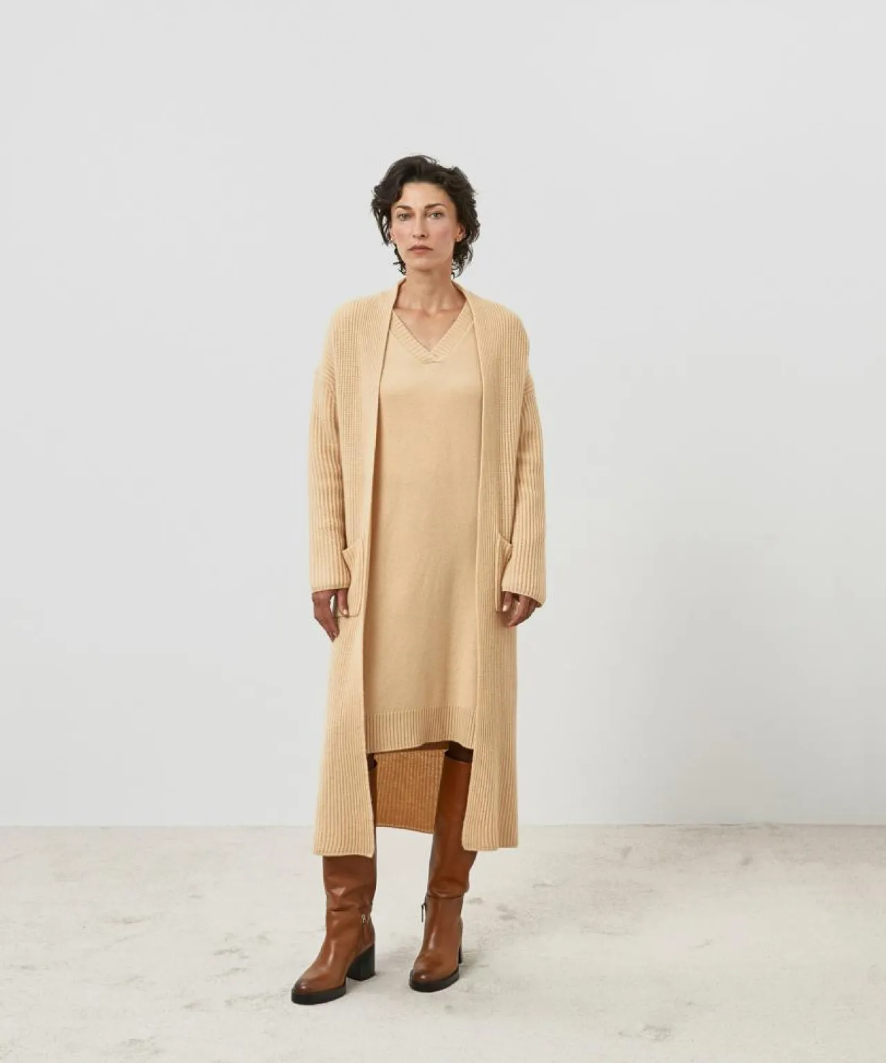 Manteau Lily-Rose long 100% Cachemire ceinture beige chiné