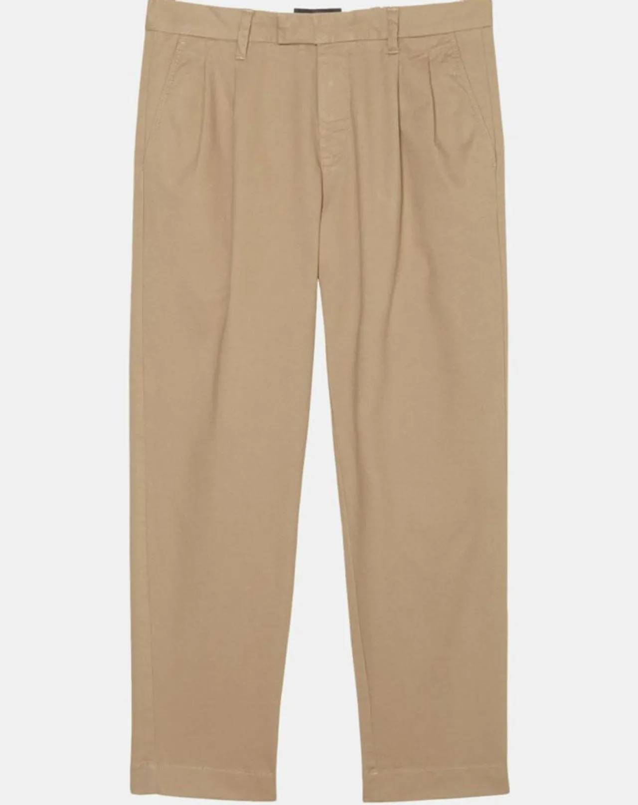 Désormais doté de pinces à la taille : le pantalon moderne – modèle BELSBO pleats – dans un mélange de coton biologique extensible de qualité supérieure.
