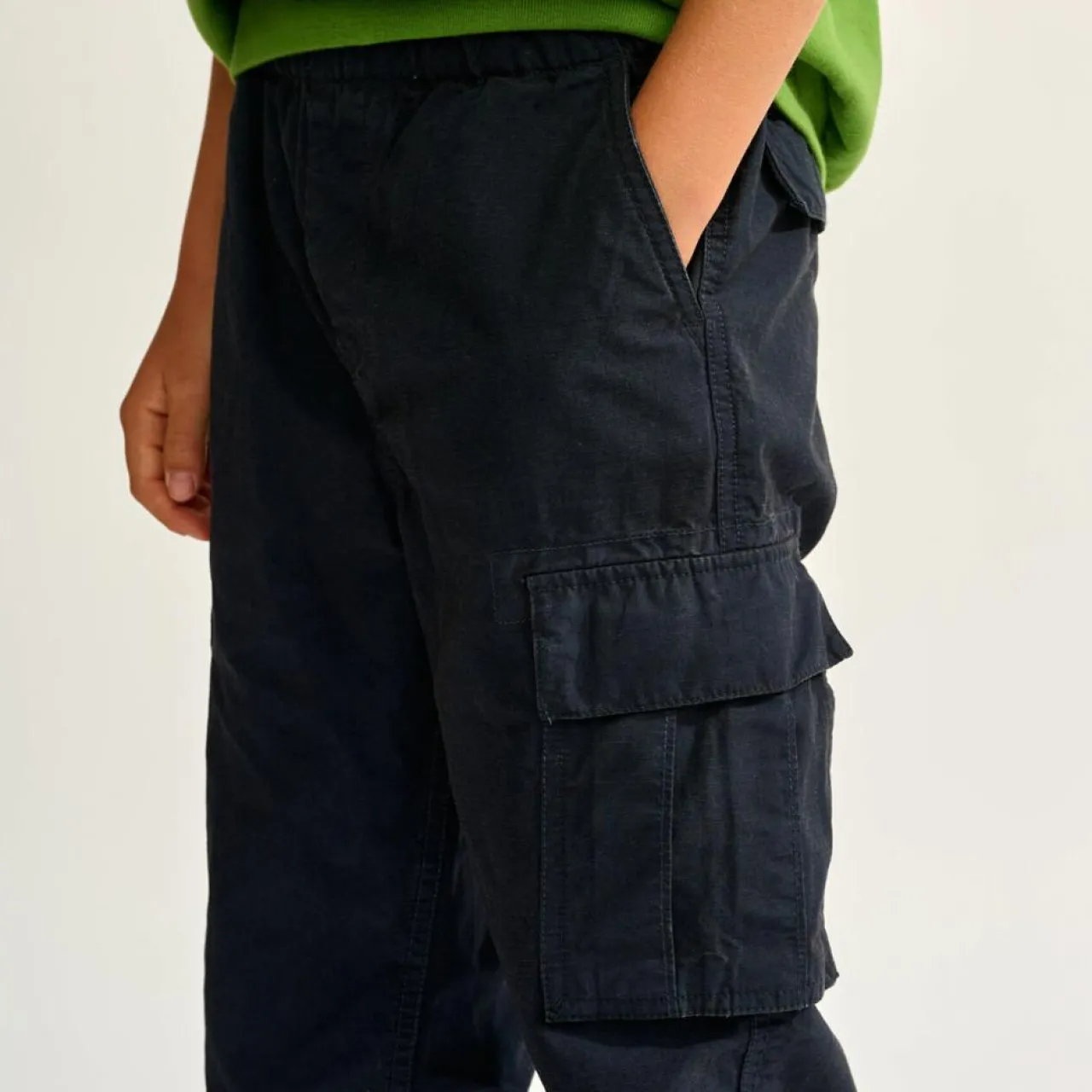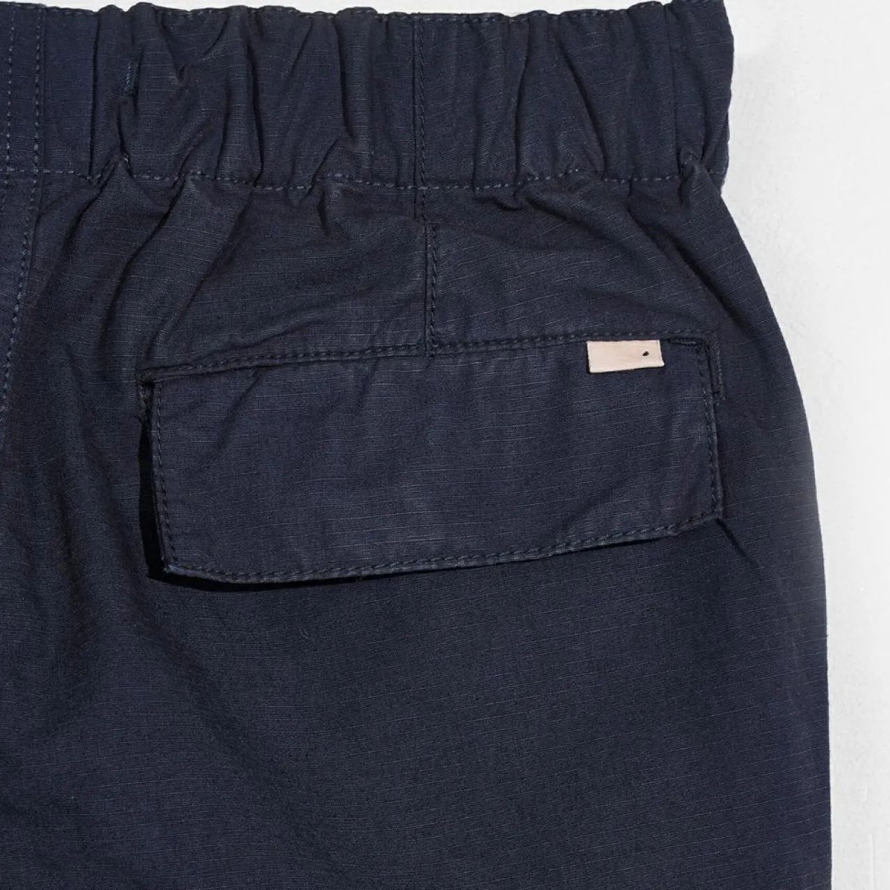Confectionné en micro ripstop de pur coton, ce pantalon cargo présente une taille élastiquée ajustable et de multiples poches
