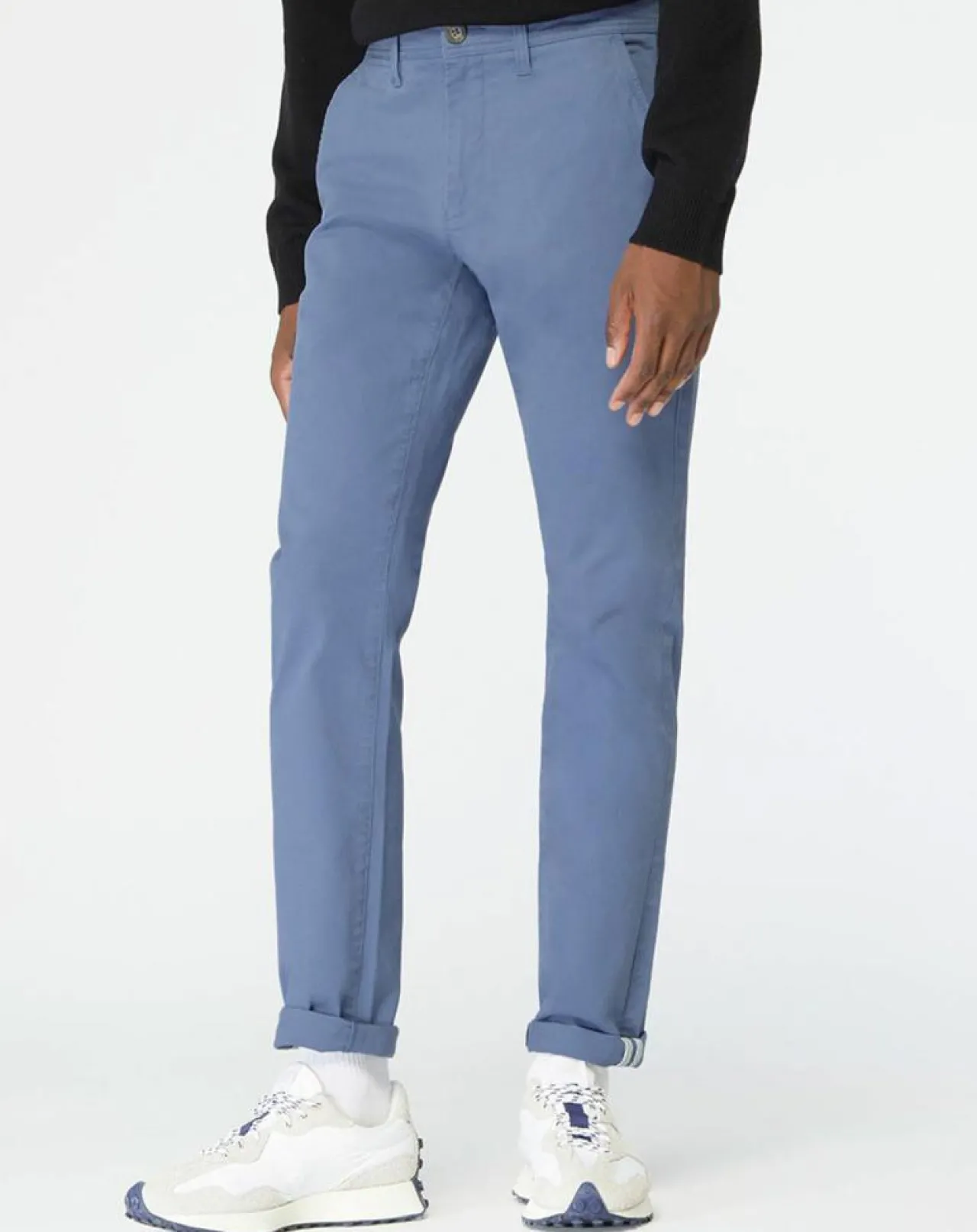 Ce pantalon chino coupe ajustée Galeries Lafayette en coton biologique présente des passants pour la ceinture, une fermeture zippée rehaussée d’un bouton siglé et de poches latérales.