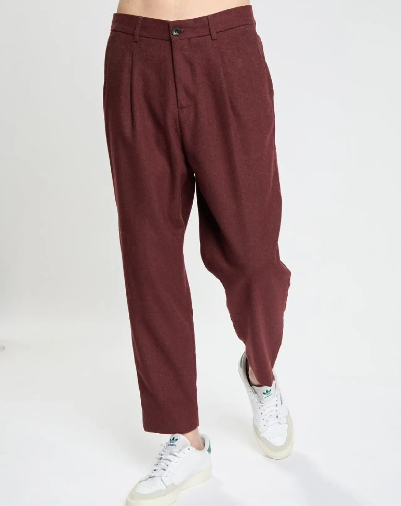 Pantalon Chino Loose Pince Laine mélangée Ceinturé