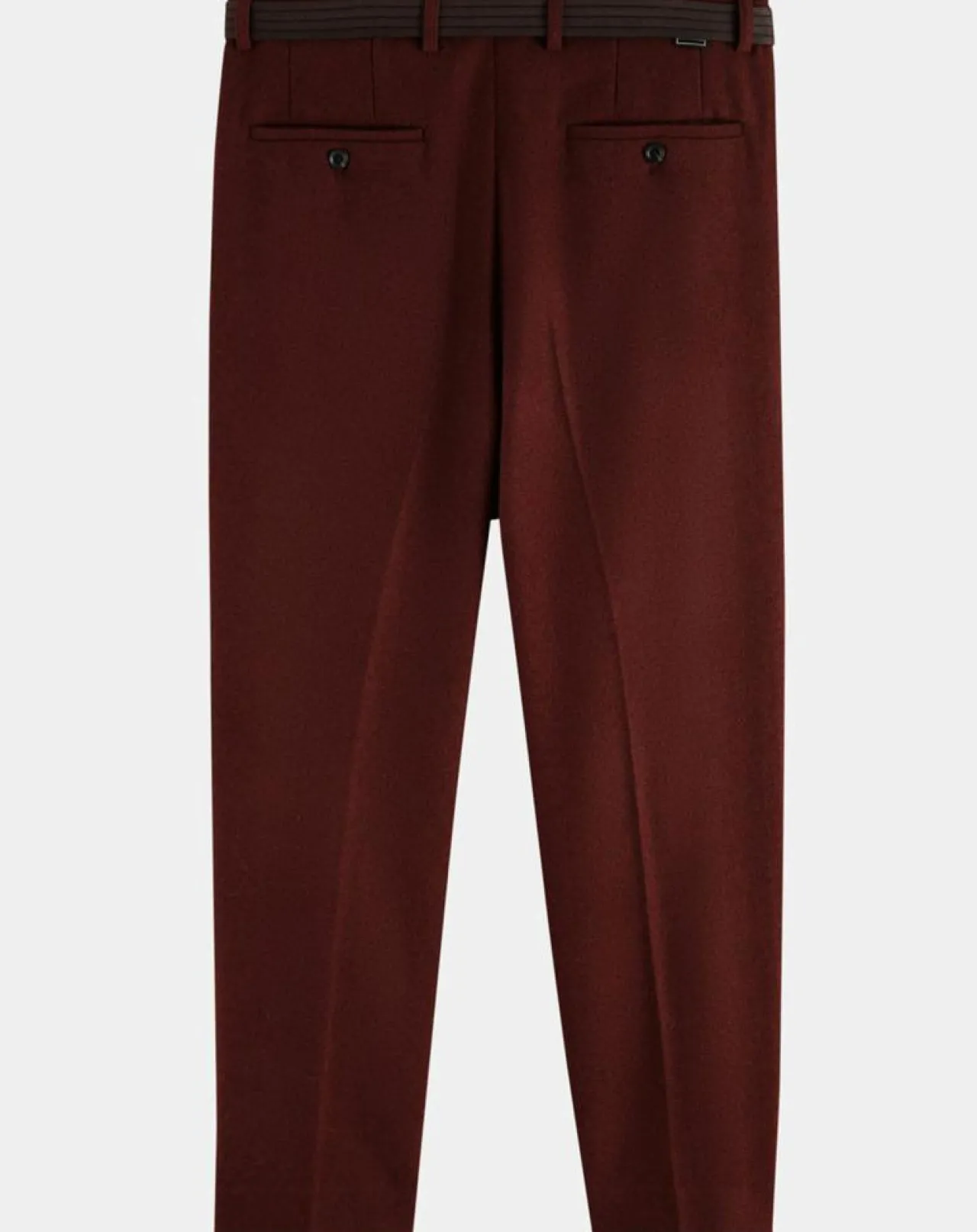 Ce pantalon chino Scotch and Soda confectionné en laine mélangée dispose d’une coupe ample, d’une ceinture à boucle double D, de poches latérales, de poches passepoilées sur l’arrière et d’une fermeture zippée et boutonnée.