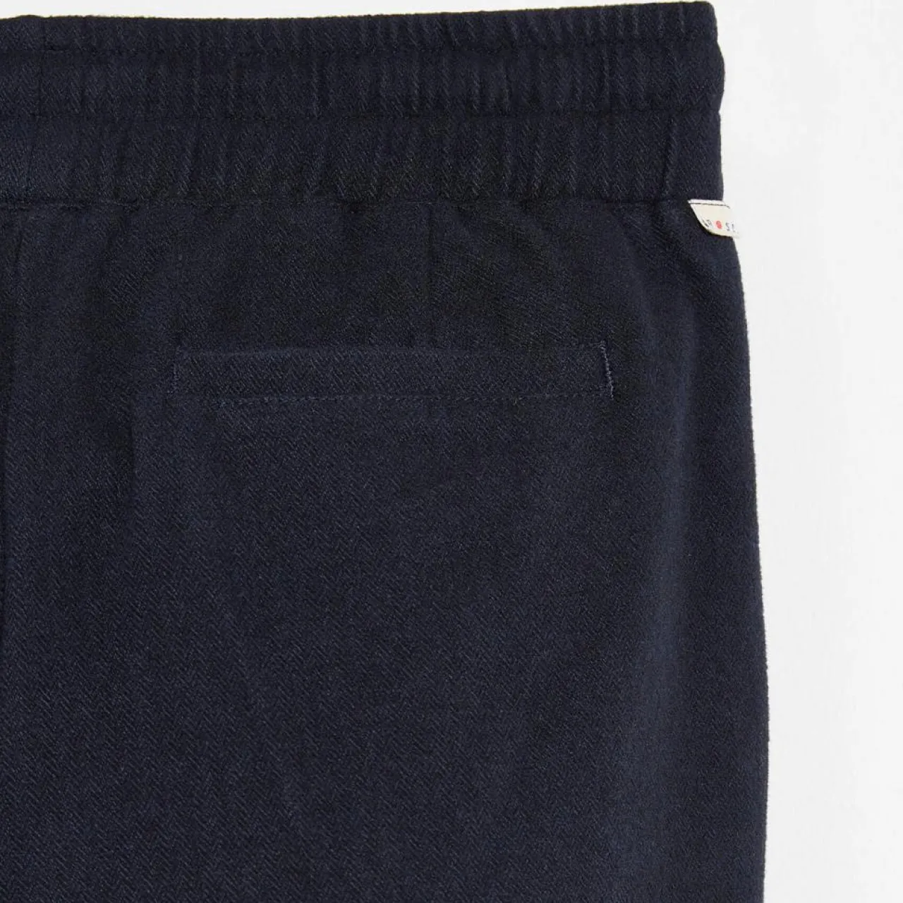 Le confort d’un jogging grâce à une taille élastiquée et un cordon de serrage, rehaussé par des jambes droites au tombé net et un pli marqué pour une touche de classe