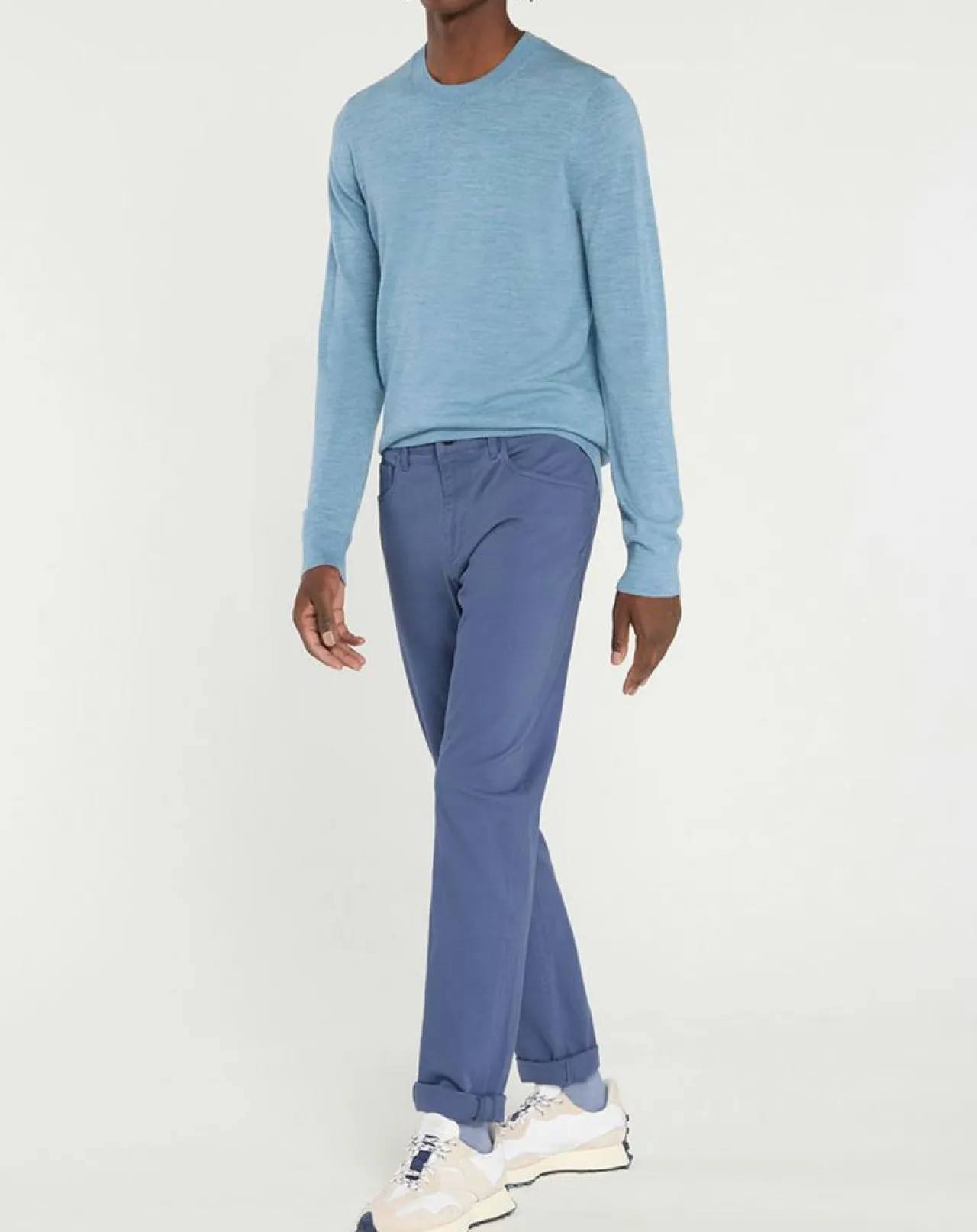 Ce jean ajusté Galeries Lafayette en coton stretch présente des passants pour le ceinture, 2 poches cavalières et une poche ticket ainsi que 2 poches plaquées au dos.