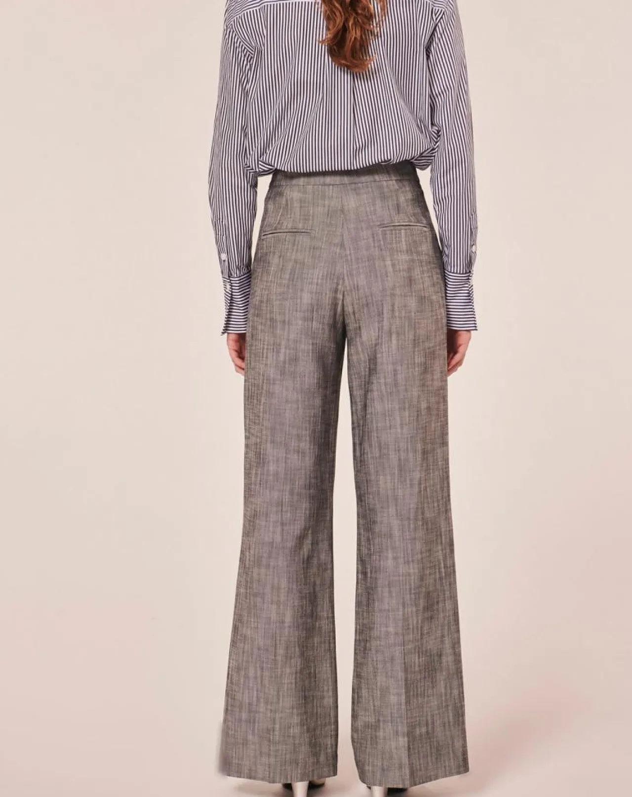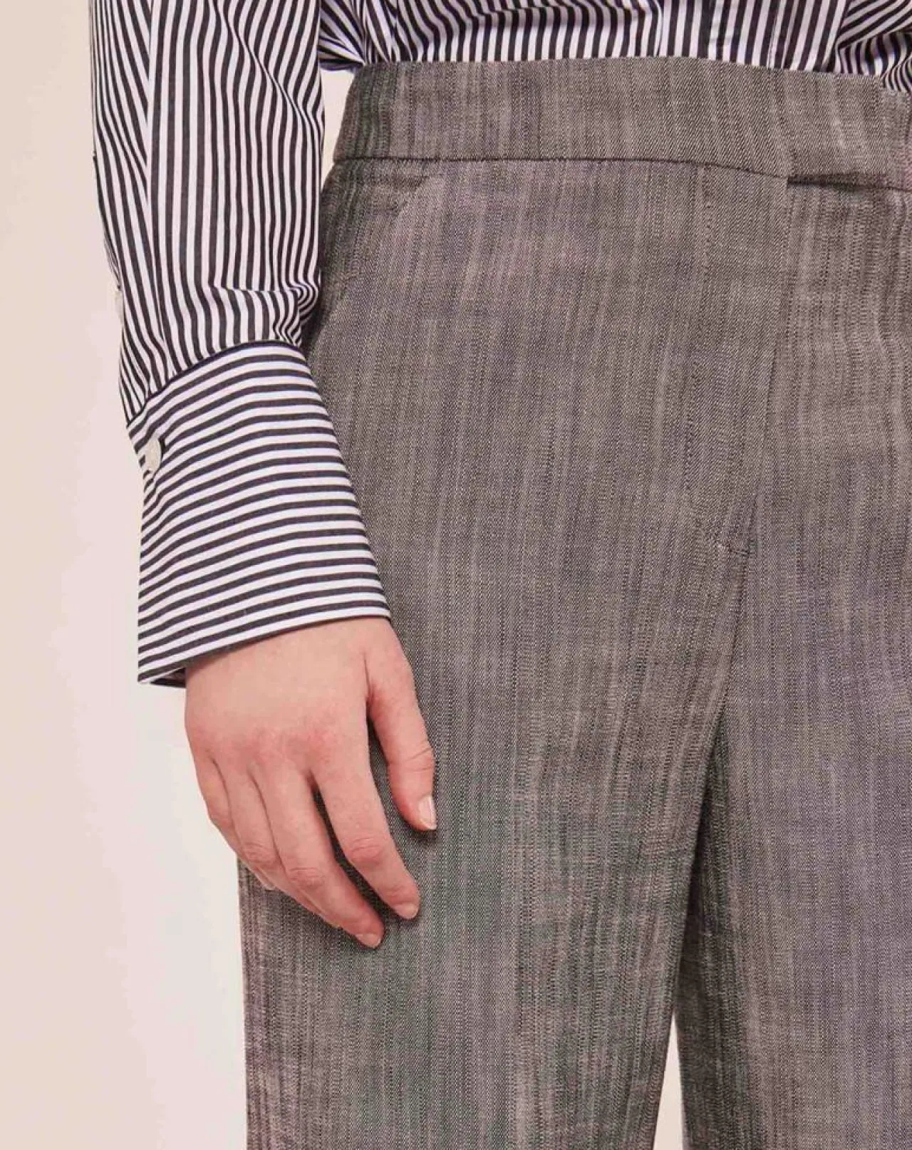 Pantalon gris en tissu flammé