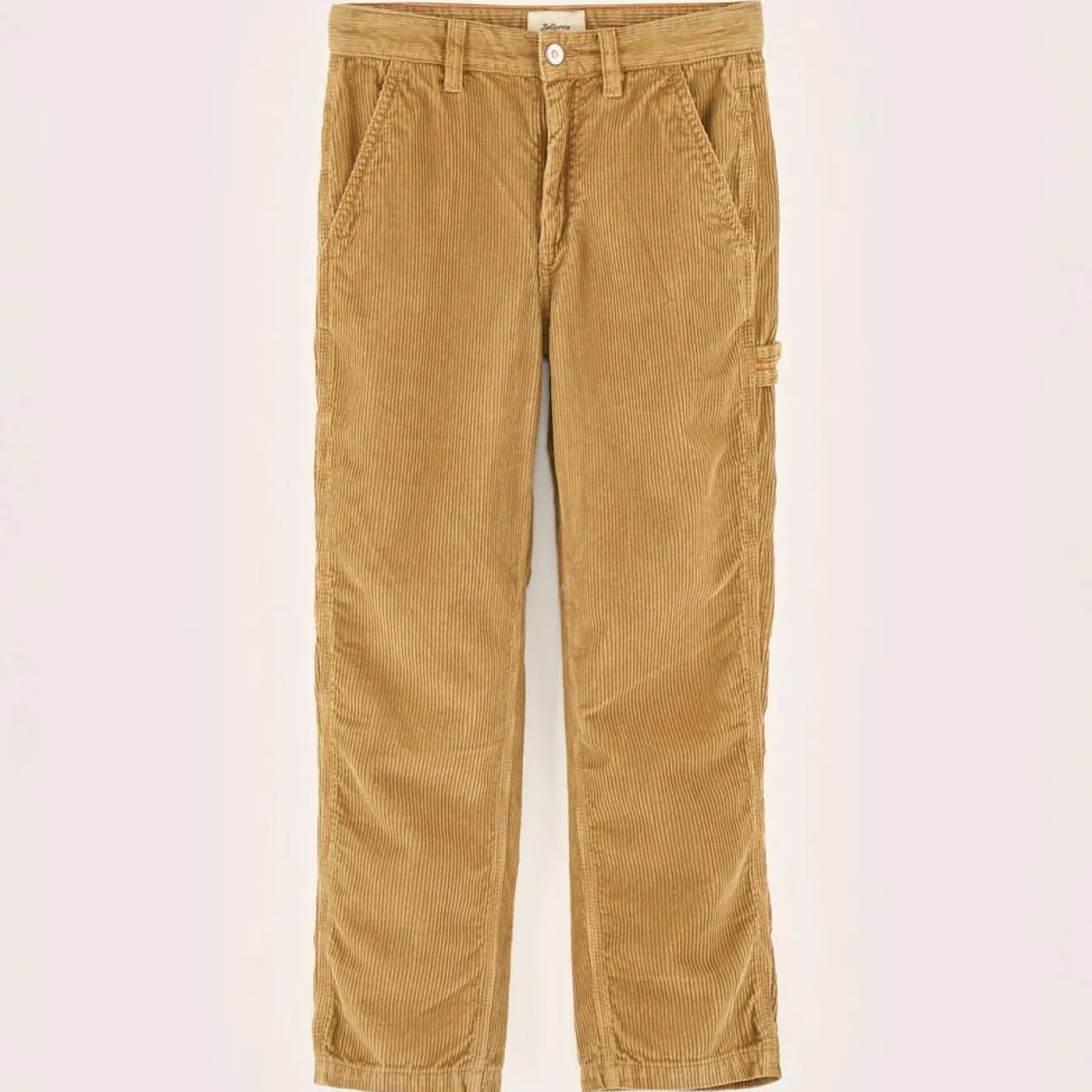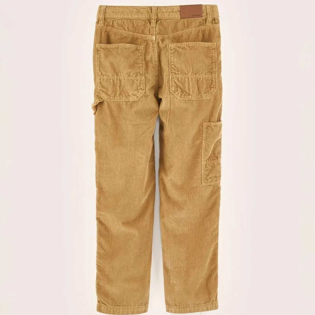 Pantalon régular à jambe droite en velours côtelé couleur marron clair