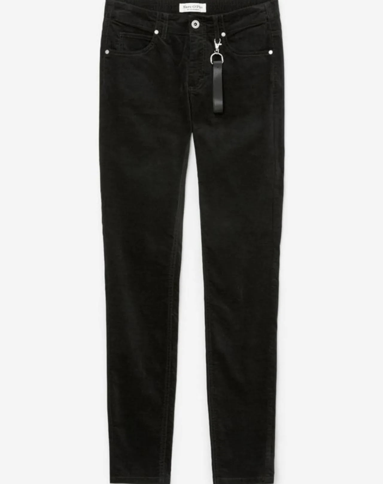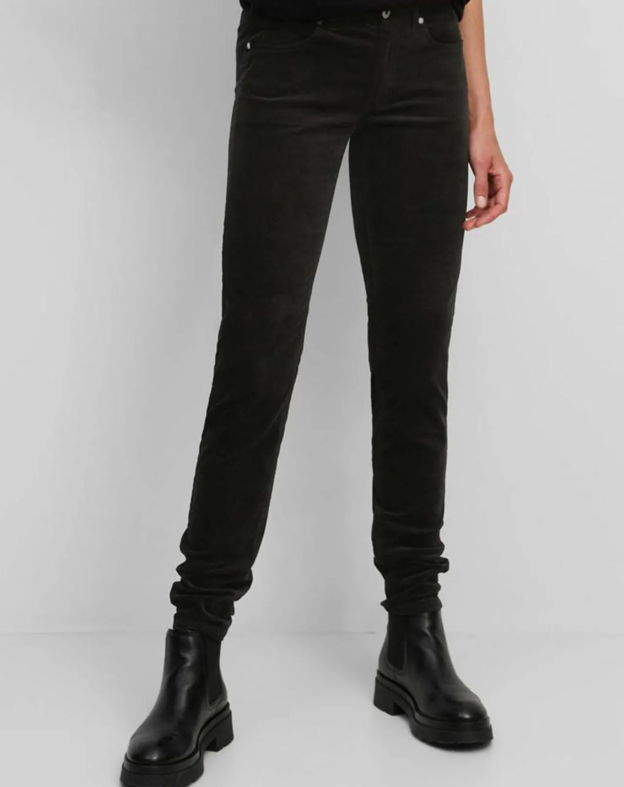 Modèle décontracté et extensible en coton biologique mélangé de qualité doté d’une texture en twill fin à l’aspect velouté.