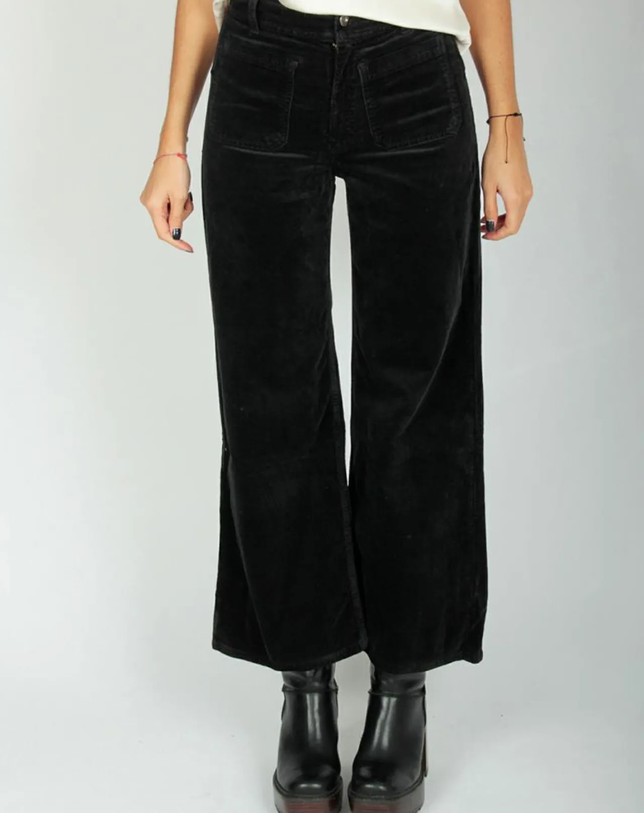 Pantalon taille haute jupe-culotte avec poches plaquées devant, zip et bouton métal
