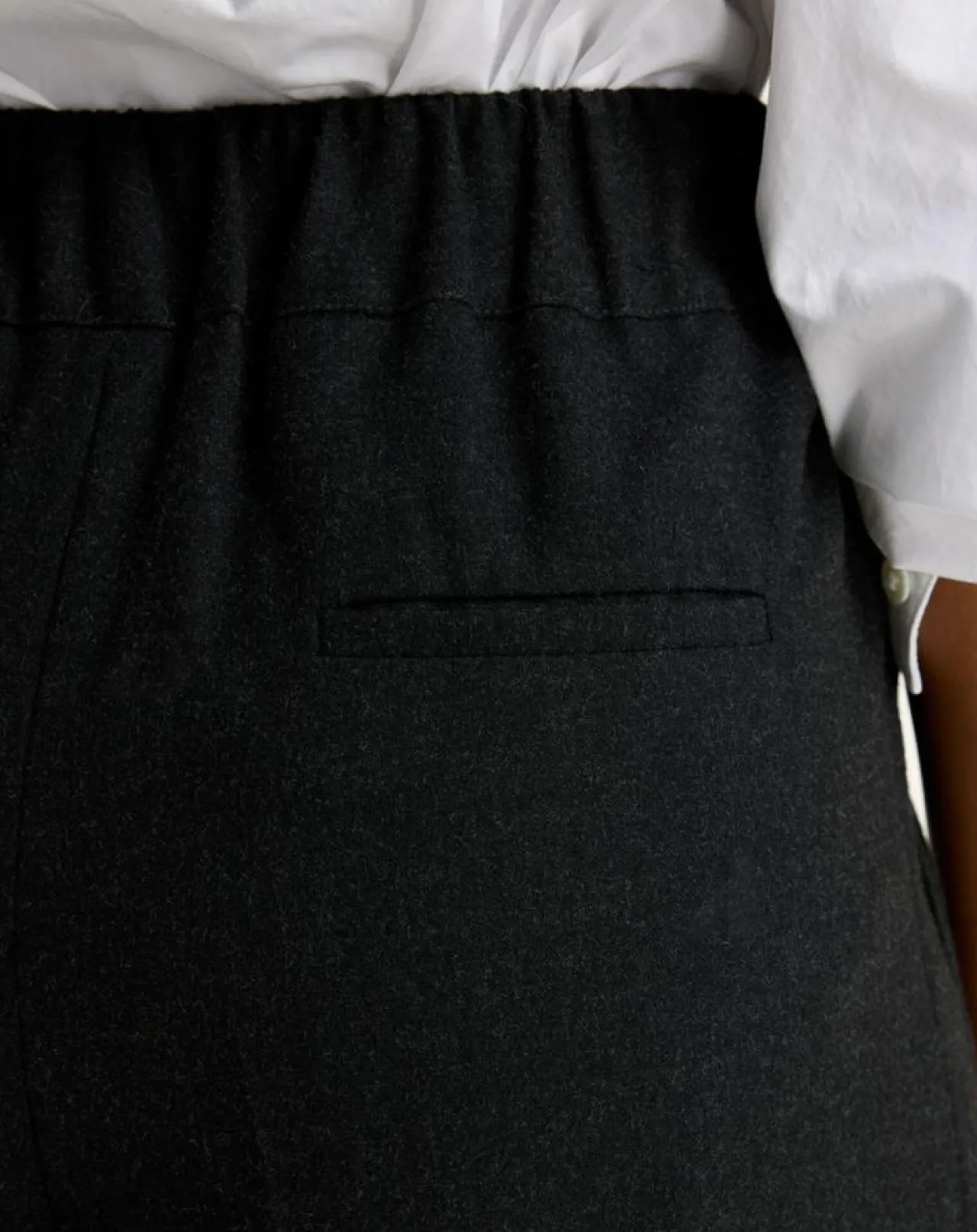 Pantalon à jambes larges, taille élastique et poches passepoilées, couleur gris anthracite