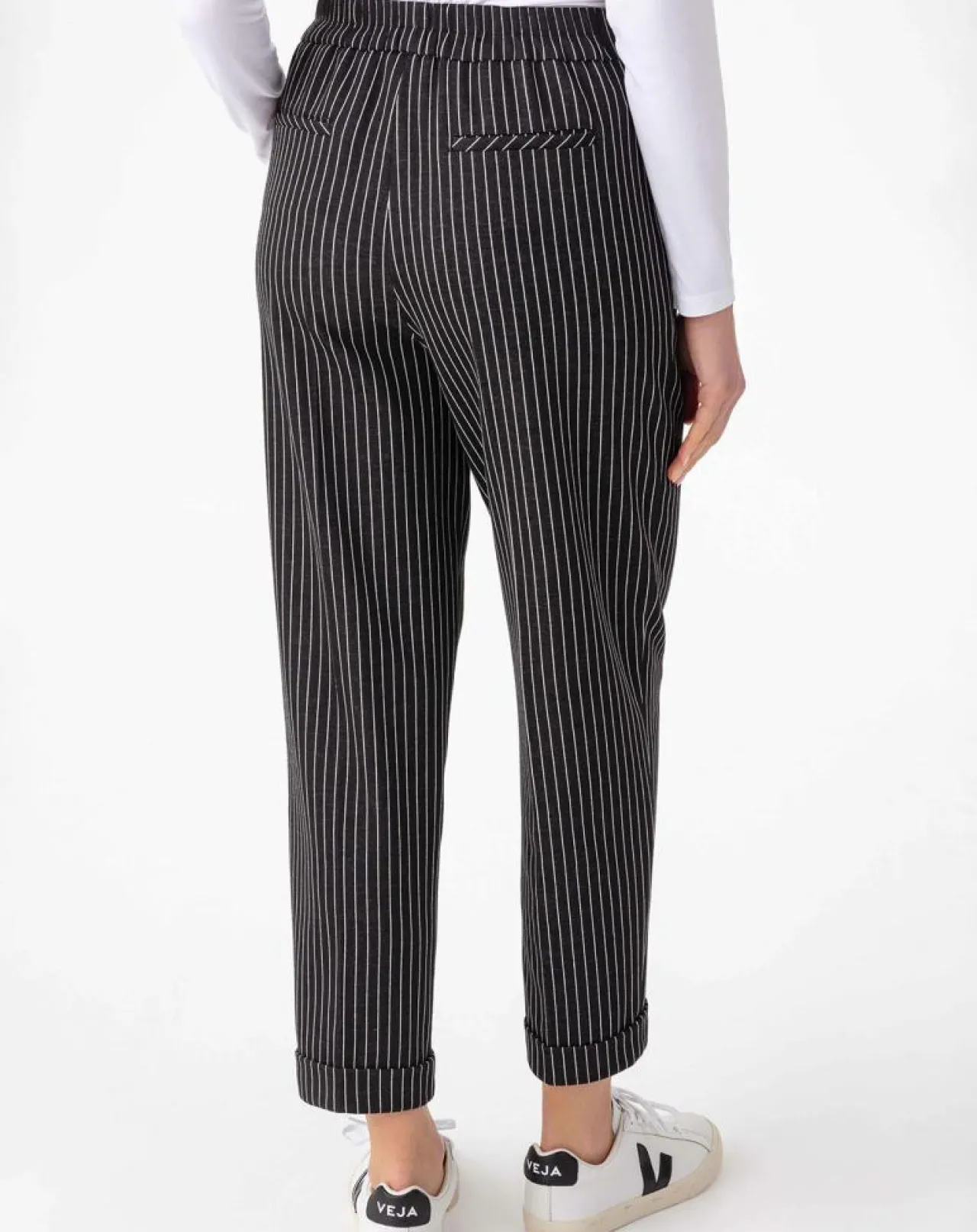 – Pantalon rayé noir et blanc taille élastique – Poches italiennes et revers sur le bas