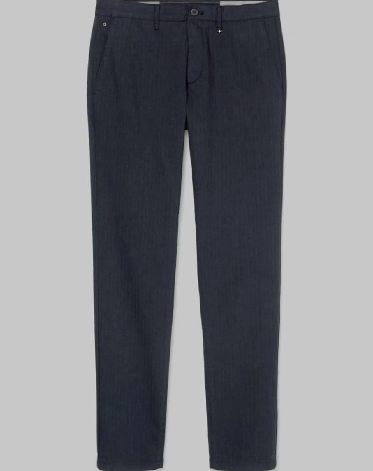 Coupe Slim Fit masculine, poches cavalières et poches passepoilées au dos.