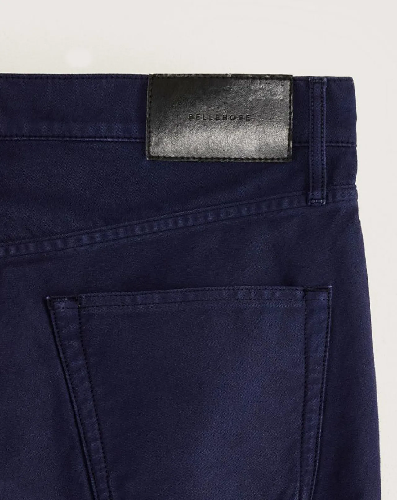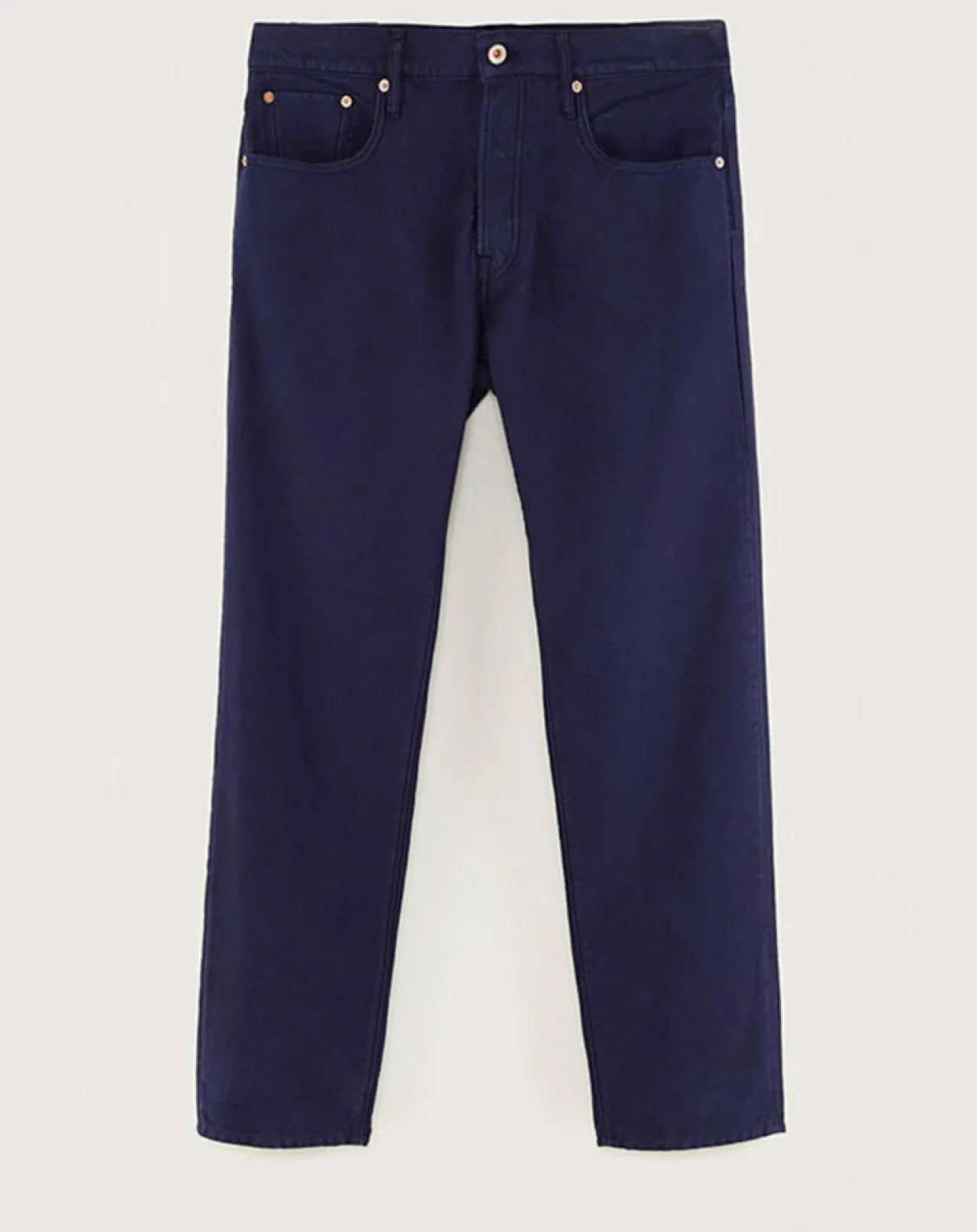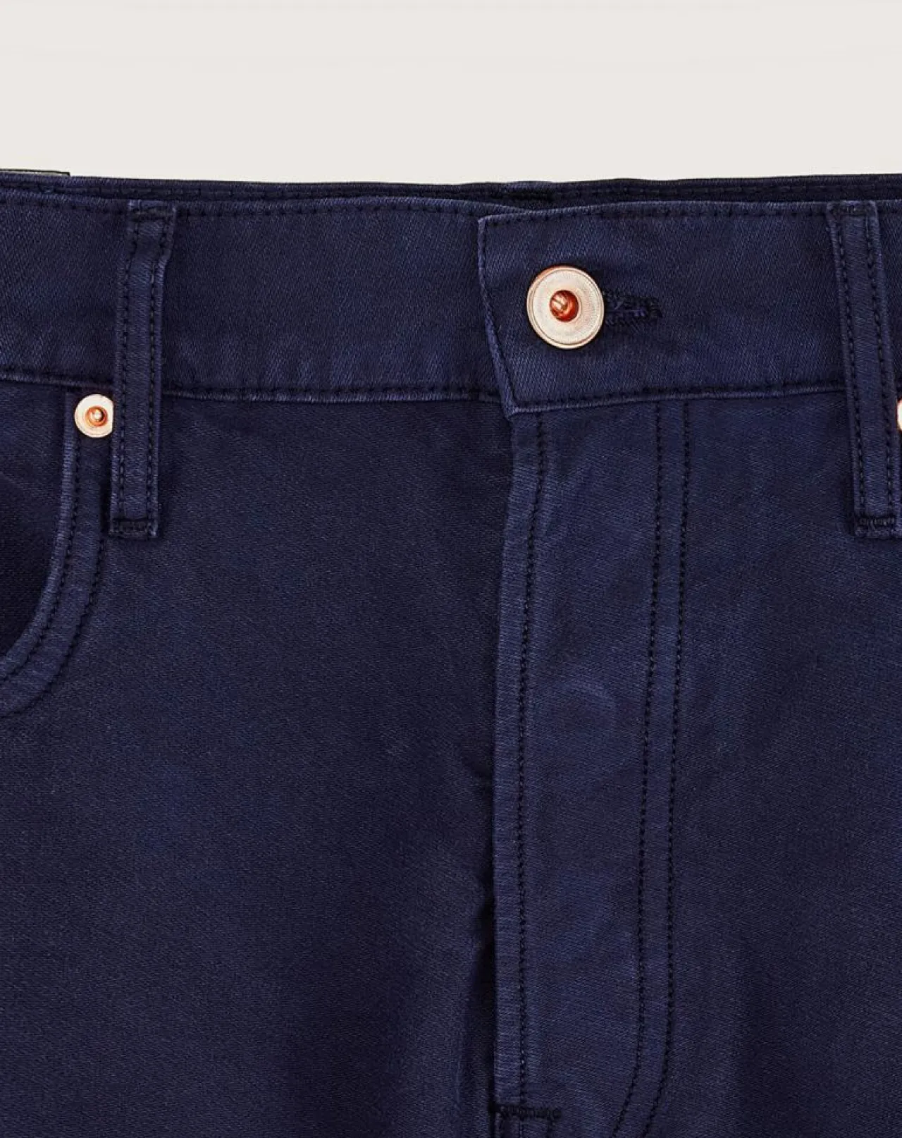 Pantalon 5 poches dad style, taille basse et jambes droites, en toile de coton bleu foncé