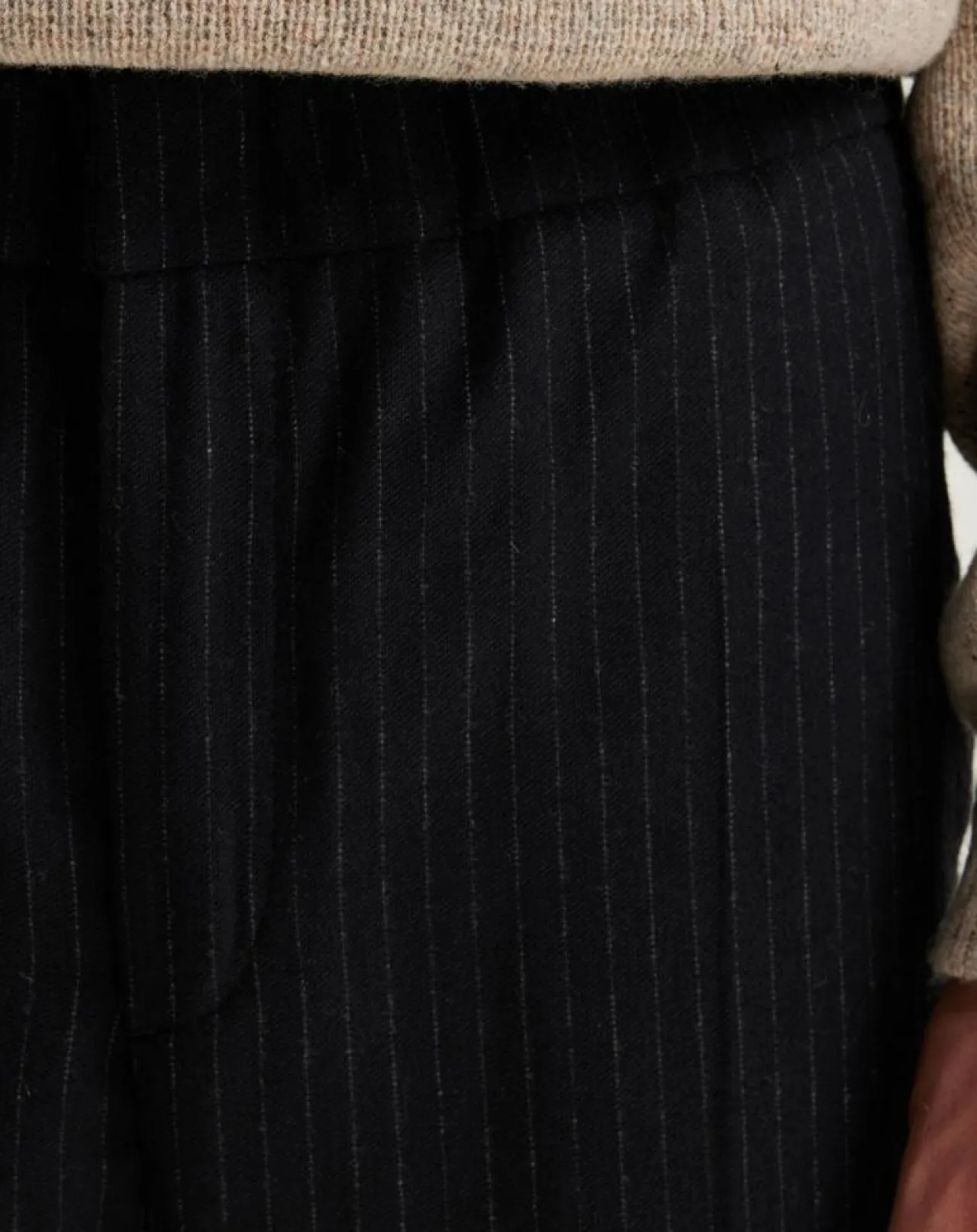 Pantalon décontracté, taille élastiquée et jambes larges et fuselées en tissu rayé