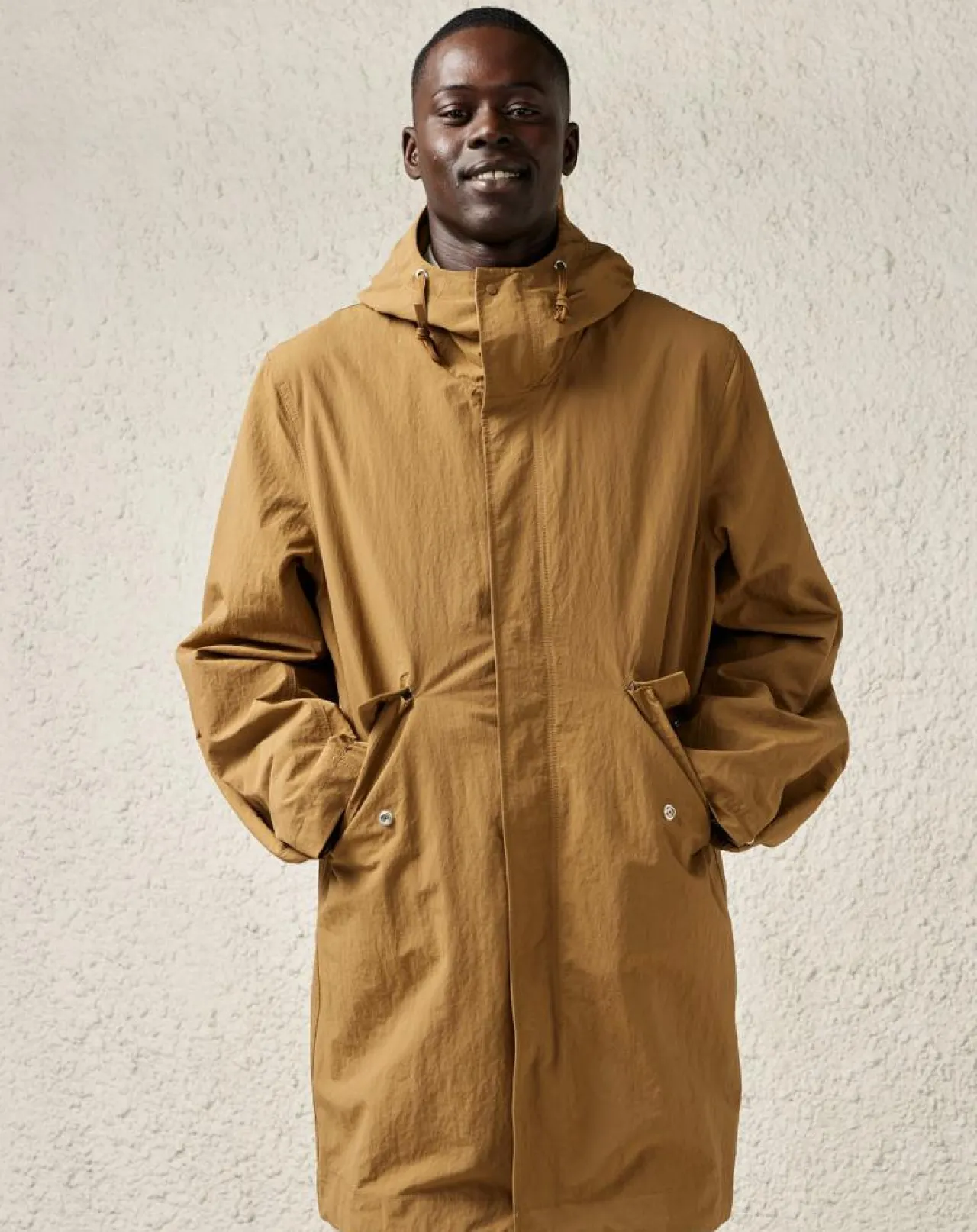 Fabriquée en nylon recyclé résistant à l’eau et dotée d’une capuche à cordon de serrage, d’une taille ajustable et de boutons-pression aux manches pour en ajuster l’ouverture, c’est le compagnon idéal pour des tenues de mi-saison.