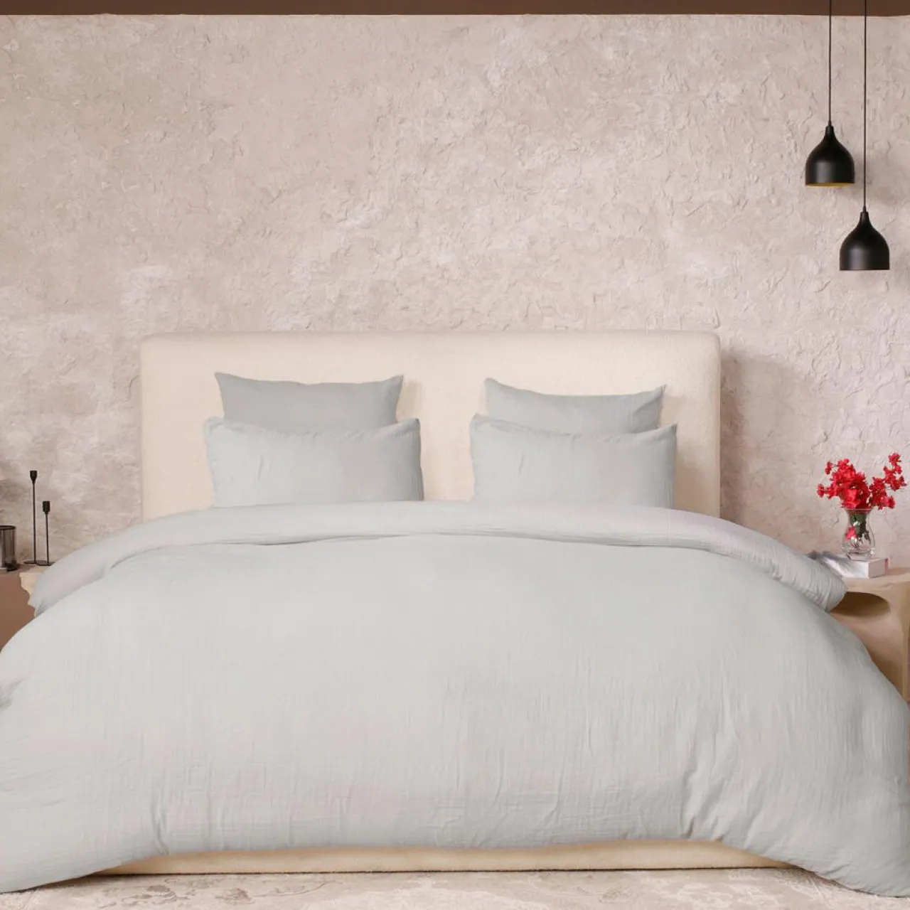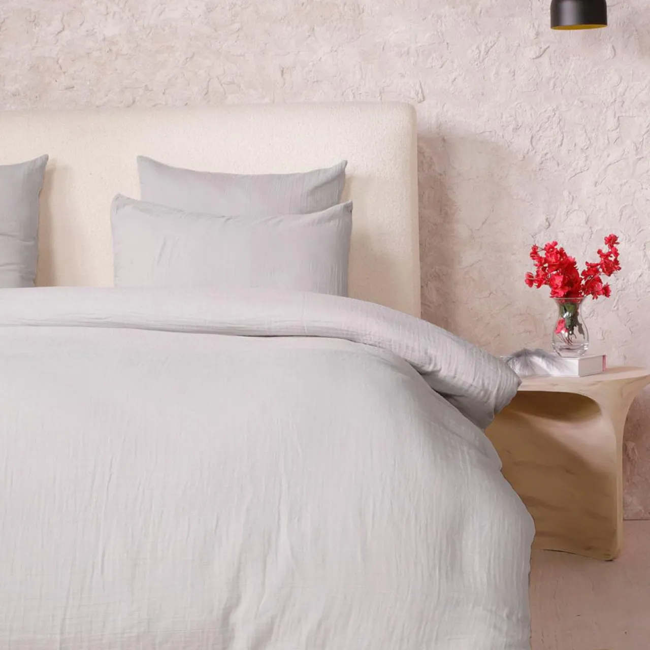 Parure de Couette 3 pcs 100% Gaze de Coton Lavé gris glacier