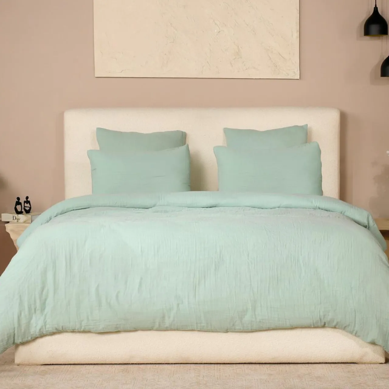 Parure de Couette 3 pcs 100% Gaze de Coton Lavé vert givrée