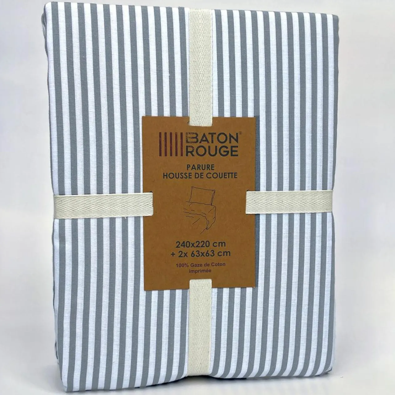 Rayures fines gris perle sur fond blanc Élégante dans sa simplicité, la parure de lit Laya incarne l’esprit naturel et raffiné de la marque Bâton Rouge