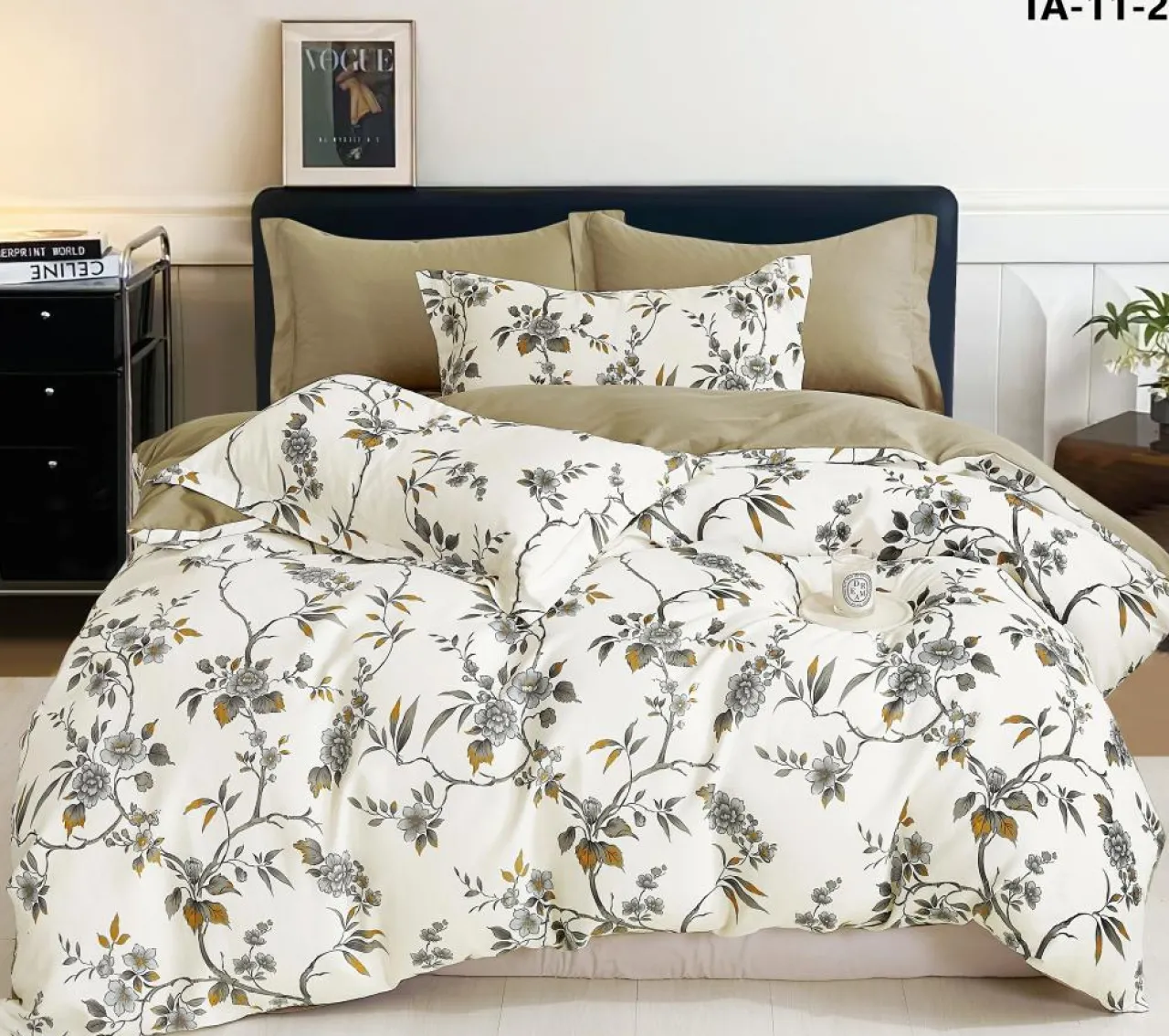 PARURE HOUSSE DE COUETTE 100 % PERCALE DE COTON AVEC TAIES FLORAINE