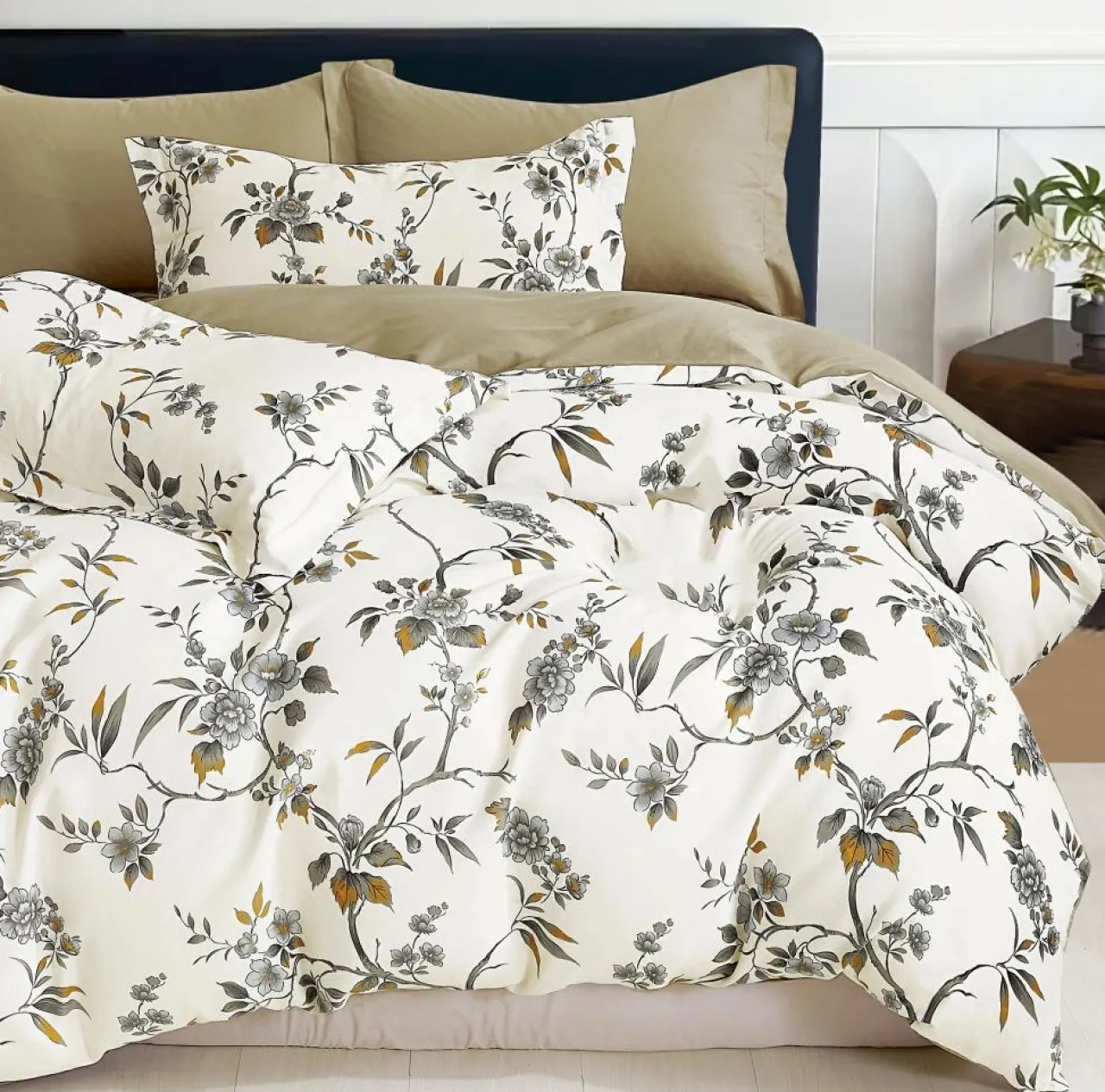Découvrez la parure Florayne, une alliance parfaite entre élégance intemporelle et confort premium. Son motif floral raffiné, dessiné en nuances de gris, ocre et noir sur un fond écru lumineux, apporte charme, délicatesse et sophistication à votre chambre.