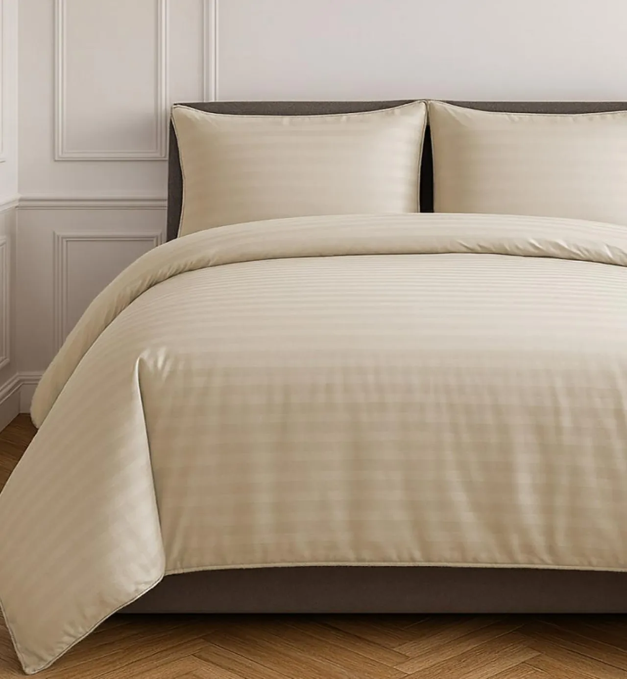 PARURE HOUSSE DE COUETTE EN 100% SATIN DE COTON 80FILS – RAYE TAUPE