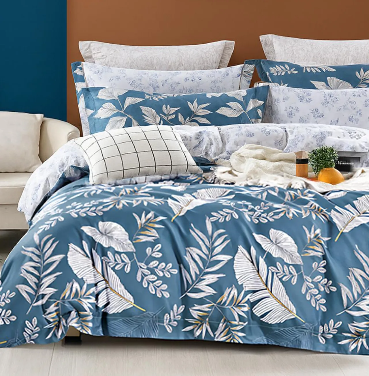 Transformez votre chambre en un havre de fraîcheur élégante avec la parure de couette Azuralis. Son fond bleu guède, profond et apaisant, évoque la sérénité des paysages naturels teintés de bleu végétal.