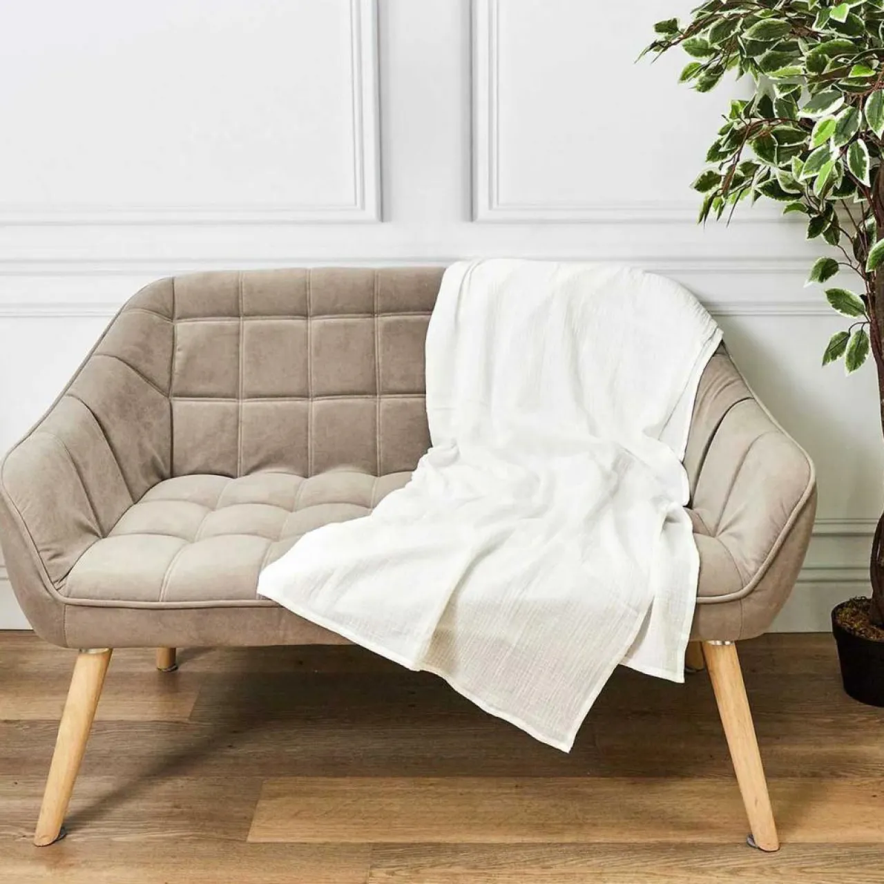 Ce plaid en gaze de coton à la jolie couleur claire apportera une touche de douceur à votre intérieur !