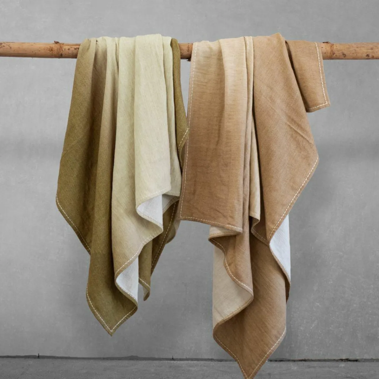 Le plaid YOGA est né d’un mélange minutieux de matières naturelles comme le coton, la laine d’agneau et le bambou afin d’allier douceur et légèreté. Le tissu est sublimé par une sérigraphie textile pour un effet tie-and-dye aux nuances apaisante et chaleureuse. Les finitions en point sellier renforcent la tenue de la pièce et soulignent son design soigné et sa confection artisanale.