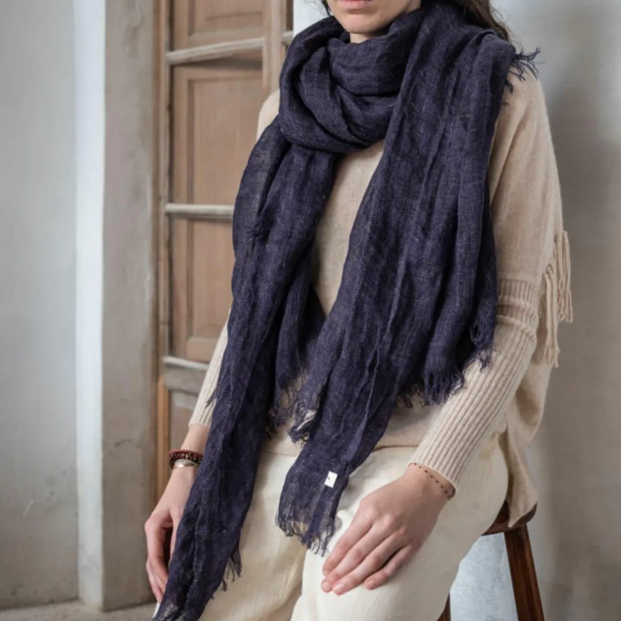 Produit versatile : peut s’utiliser également en étole ou se transforme en plaid léger