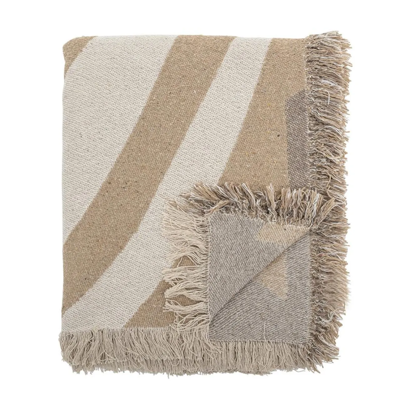 Le plaid Orinoco de Bloomingville est tissé à partir de coton recyclé avec un beau motif dans des couleurs beige et brun. Le tapis est réversible, car il a des motifs de chaque côté.