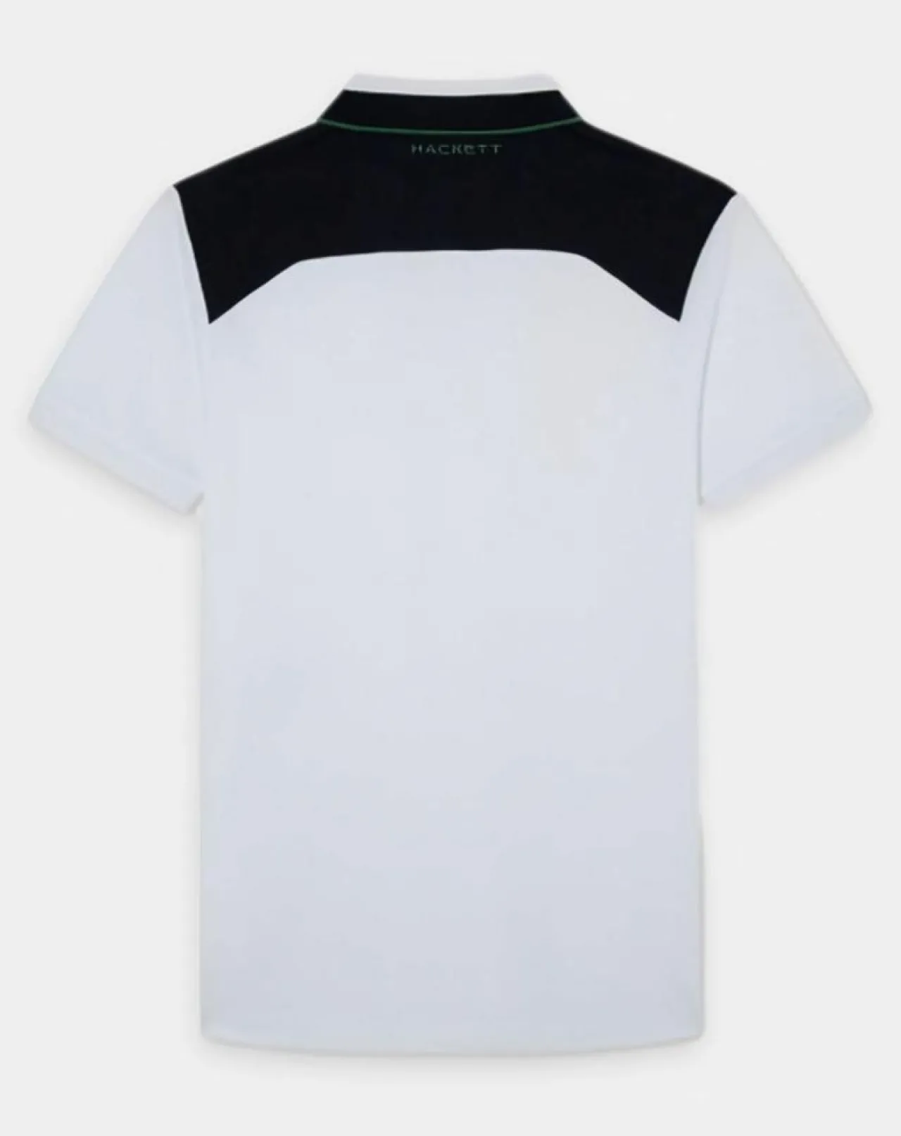Ce polo droit issu de la collaboration Aston Martin Racing x Hackett London en coton se pare d’un col classique suivi d’une patte à 2 boutons, d’une bande contrastante sur les épaules ainsi qu’en haut du dos, du logo appliqué sur le côté gauche de la poitrine et de finitions côtelées.