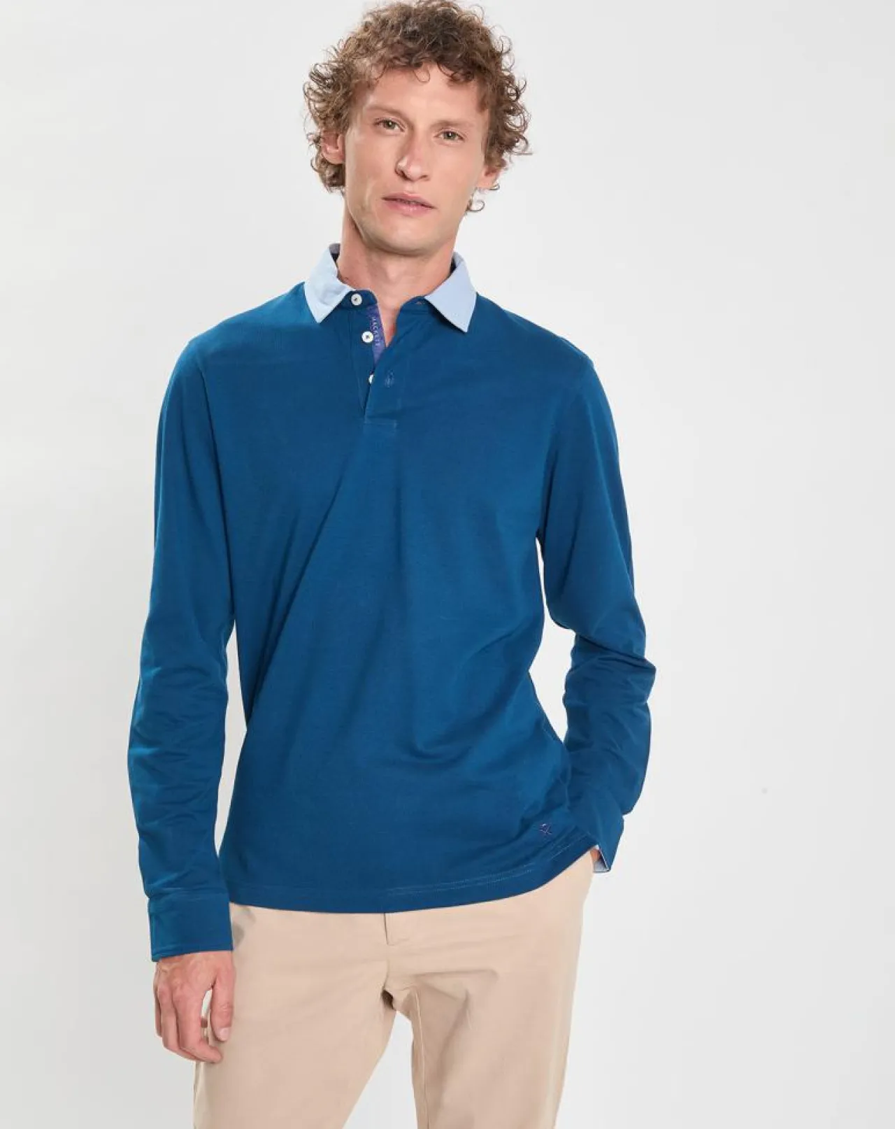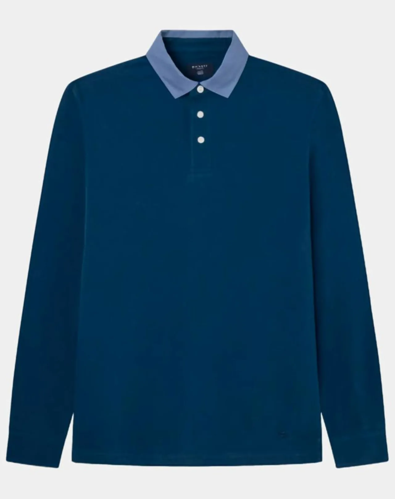 PoloCe polo droit Hackett London en coton se pare d’un col classique contrastant suivi d’une patte à 3 boutons, de manches longues, de poignets ronds à 1 bouton et du logo brodé sur la base avant gauche.