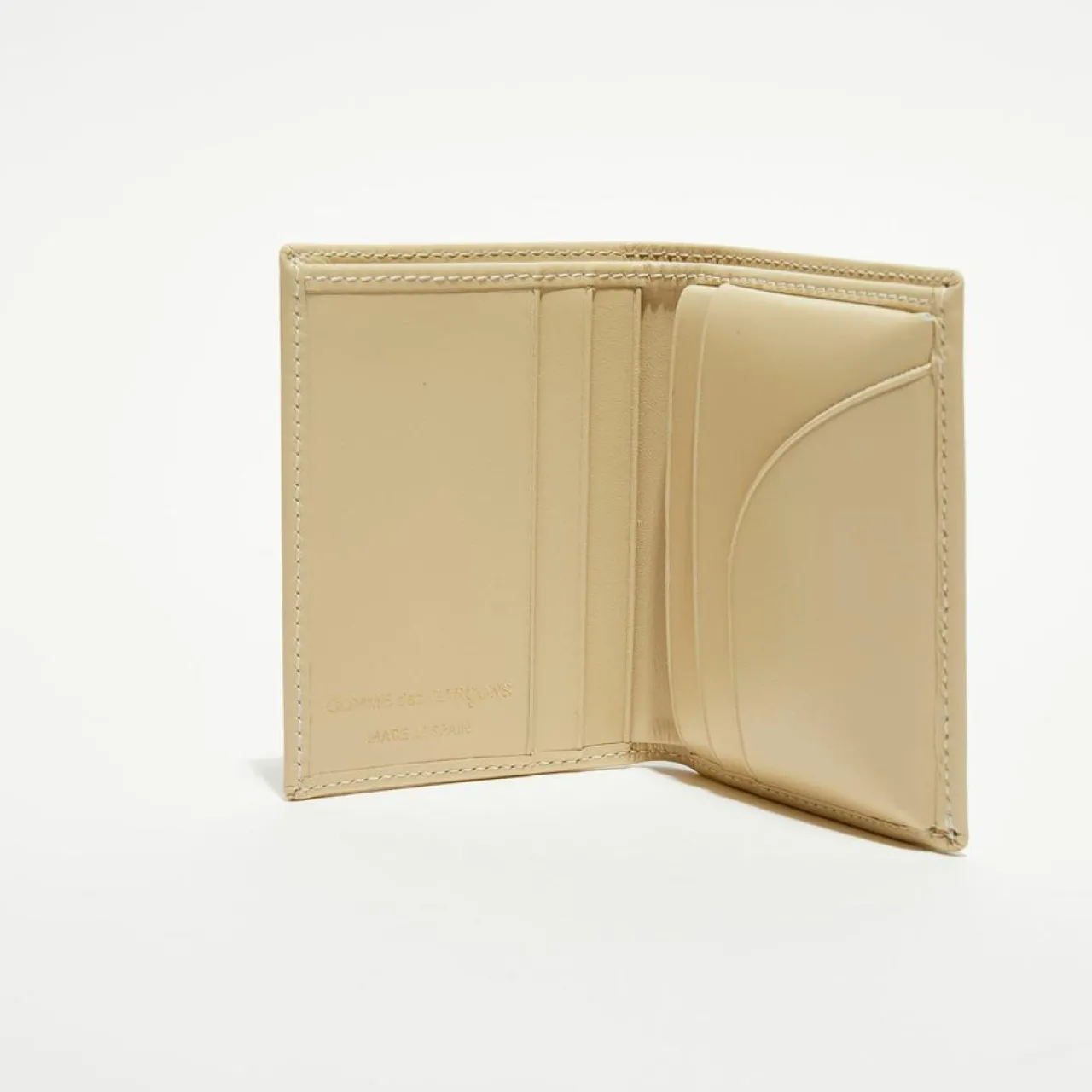 Caractéristiques : intérieur à deux volets, logo doré imprimé, plusieurs emplacements pour cartes, compartiment à billets.