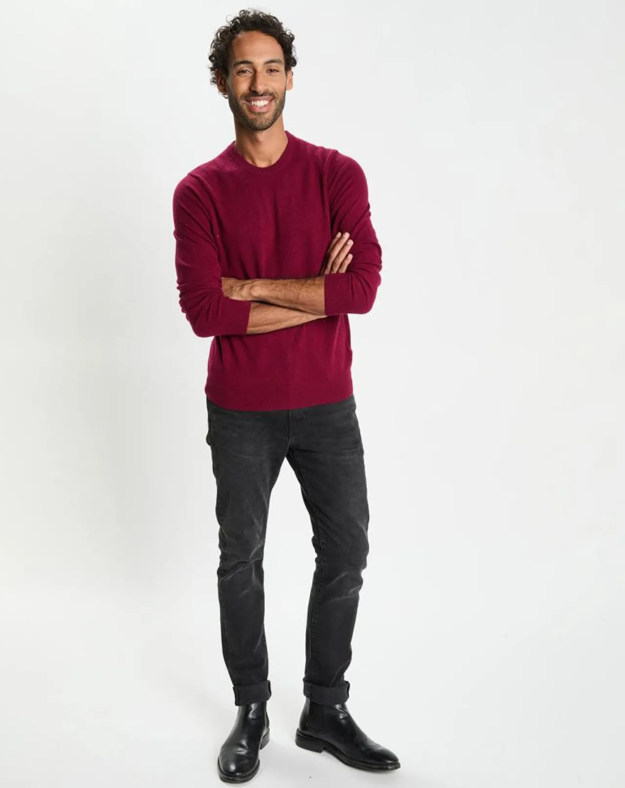 Pull droit en cachemire, muni d’un col rond, de manches longues, puis de finitions côtelées au col, aux poignets et à la base.