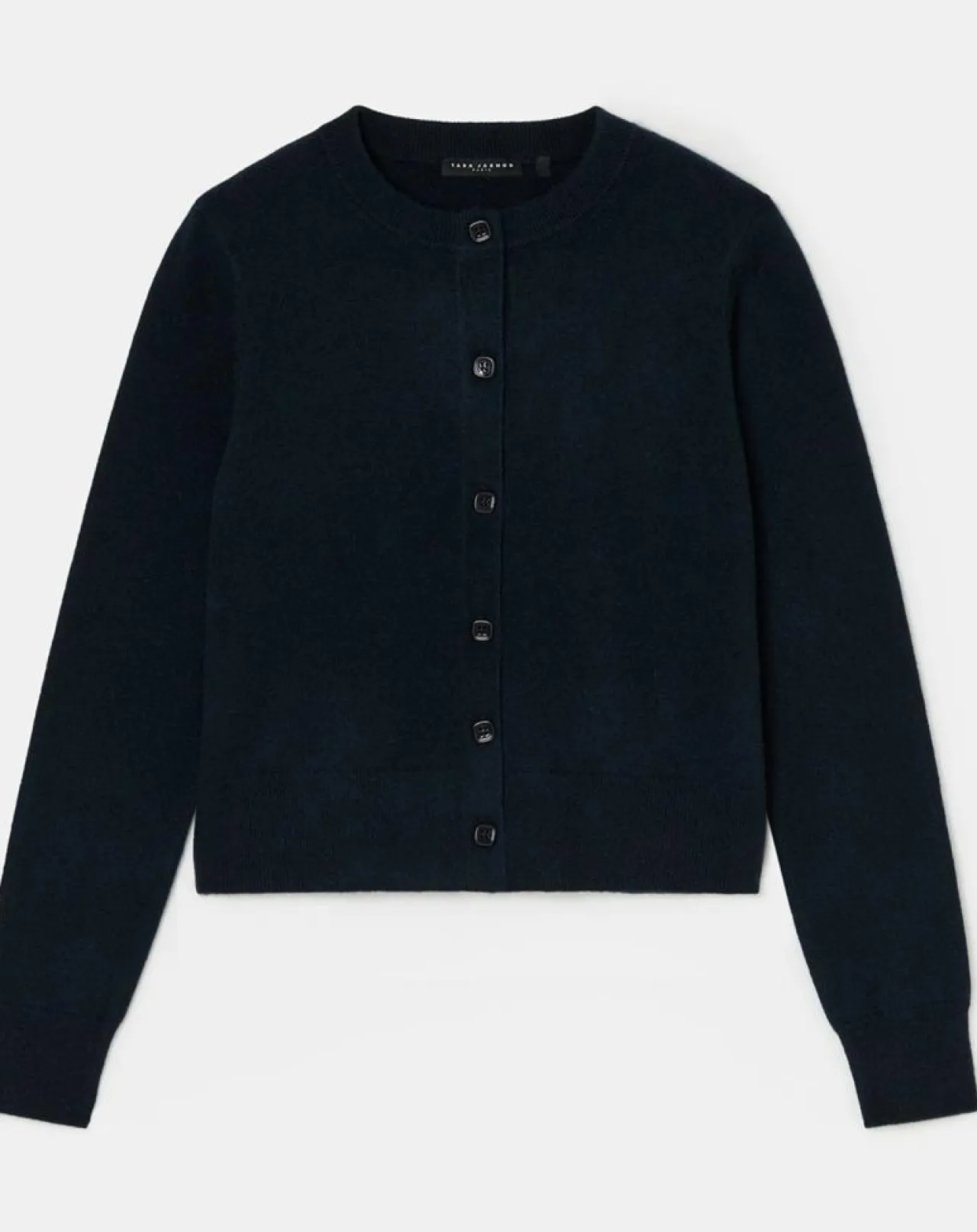 Ce gilet bleu nuit en cachemire possède des manches longues et un col rond