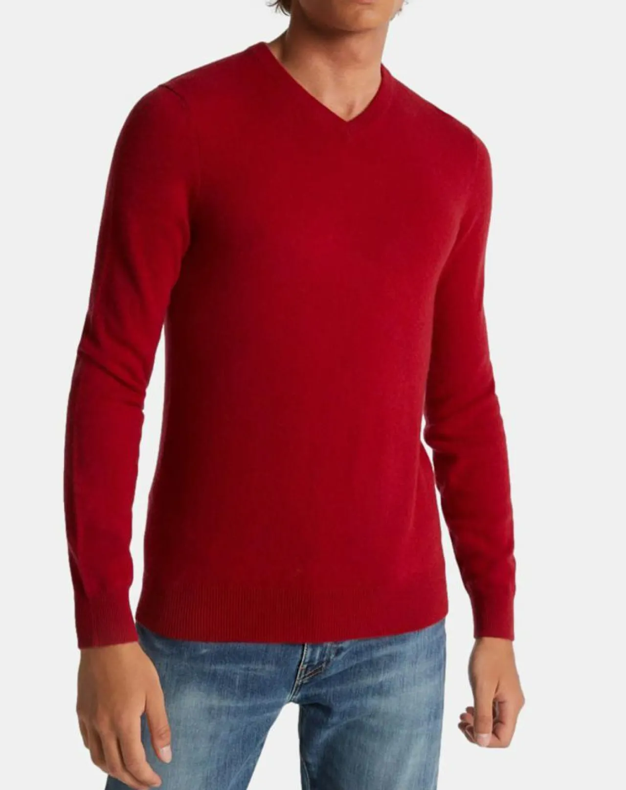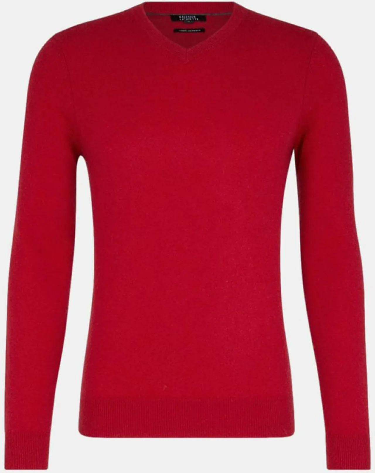 Ce pull droit Galeries Lafayette en cachemire est muni d’un col V, de manches longues et de finitions côtelées.