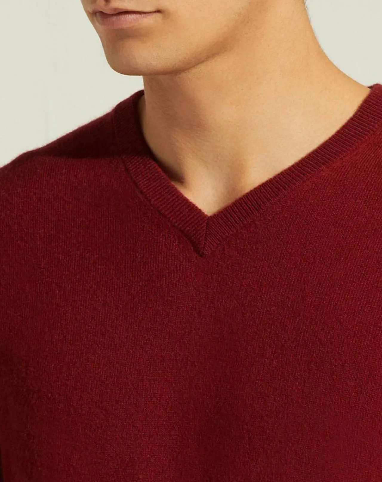 Ce pull droit Galeries Lafayette en cachemire est muni d’un col V et de finitions côtelées.