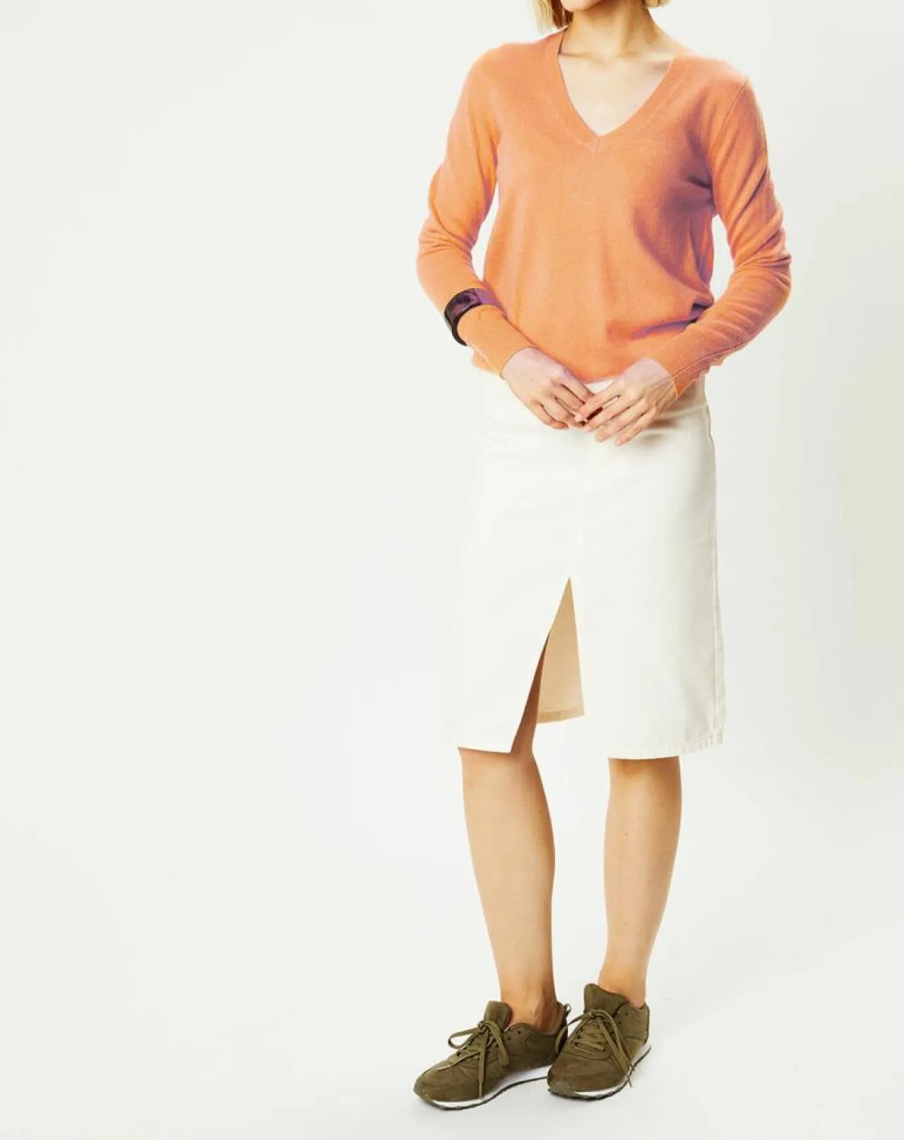 Ce pull droit Galeries Lafayette en cachemire est muni d’un col V et de finitions côtelées.