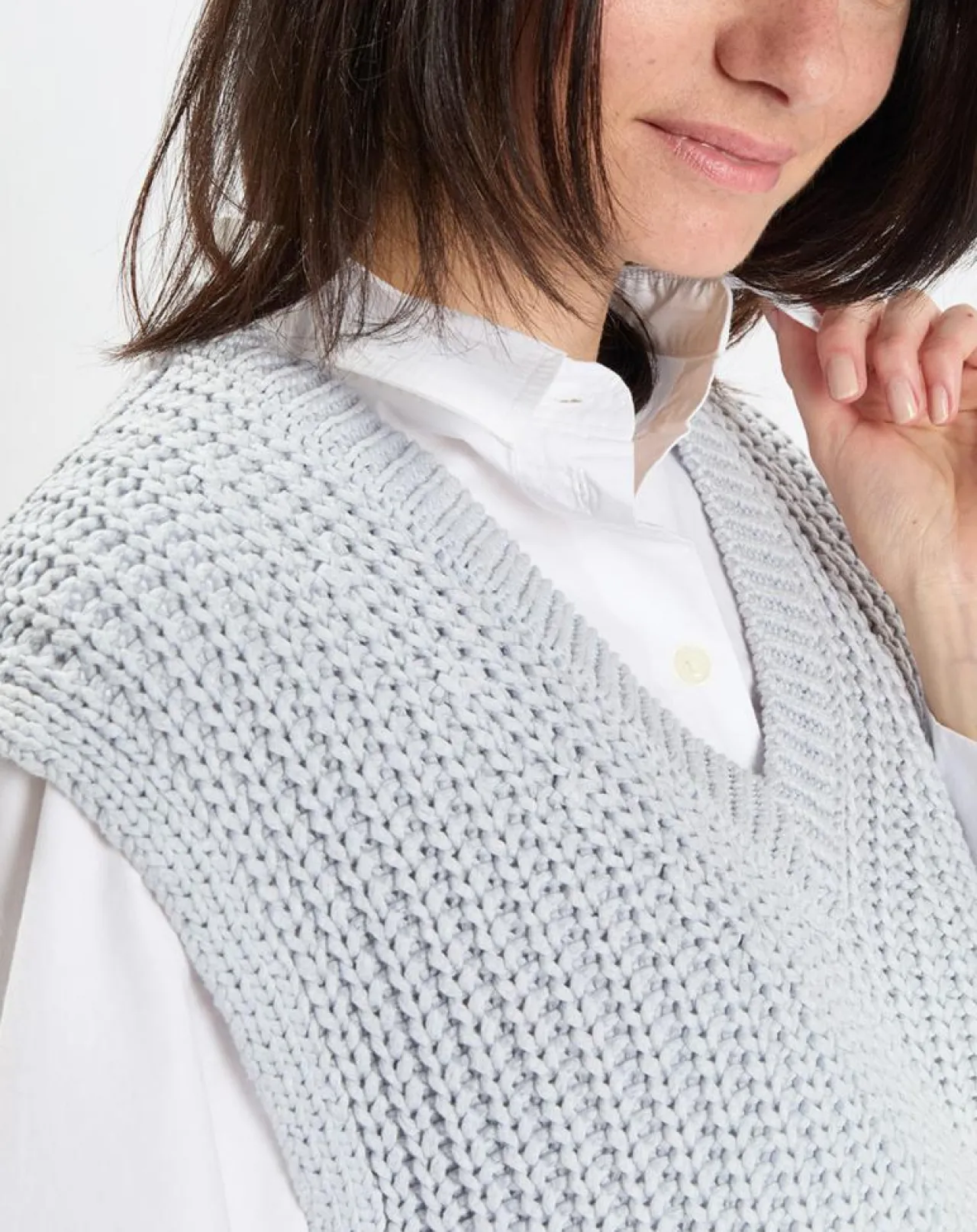À profonde encolure en V et base droite fendue sur les côtés.