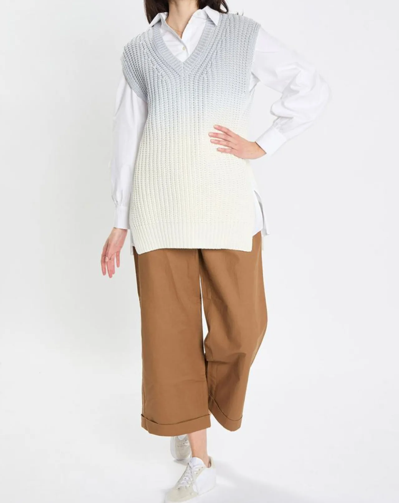 Animé d’un dégradé de couleurs délicat : le débardeur en grosse maille haut de gamme, de coupe Loose Fit ample.