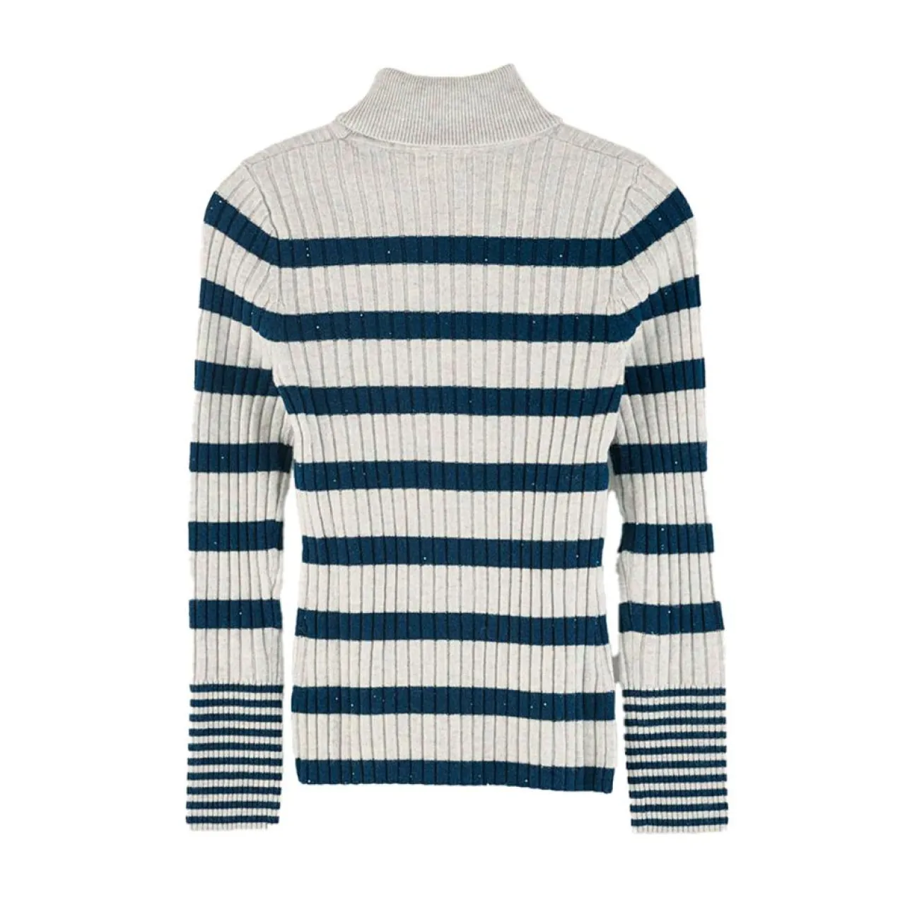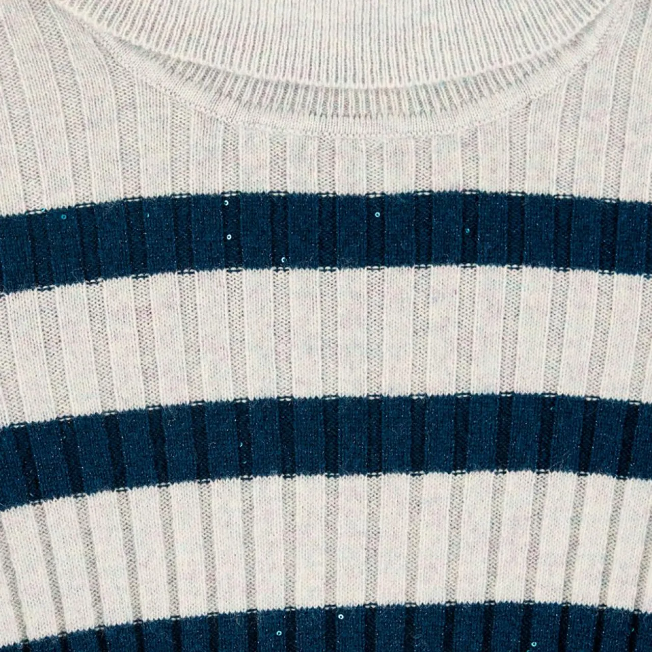 Pull slim à col montant en laine mérinos avec rayures brillantes