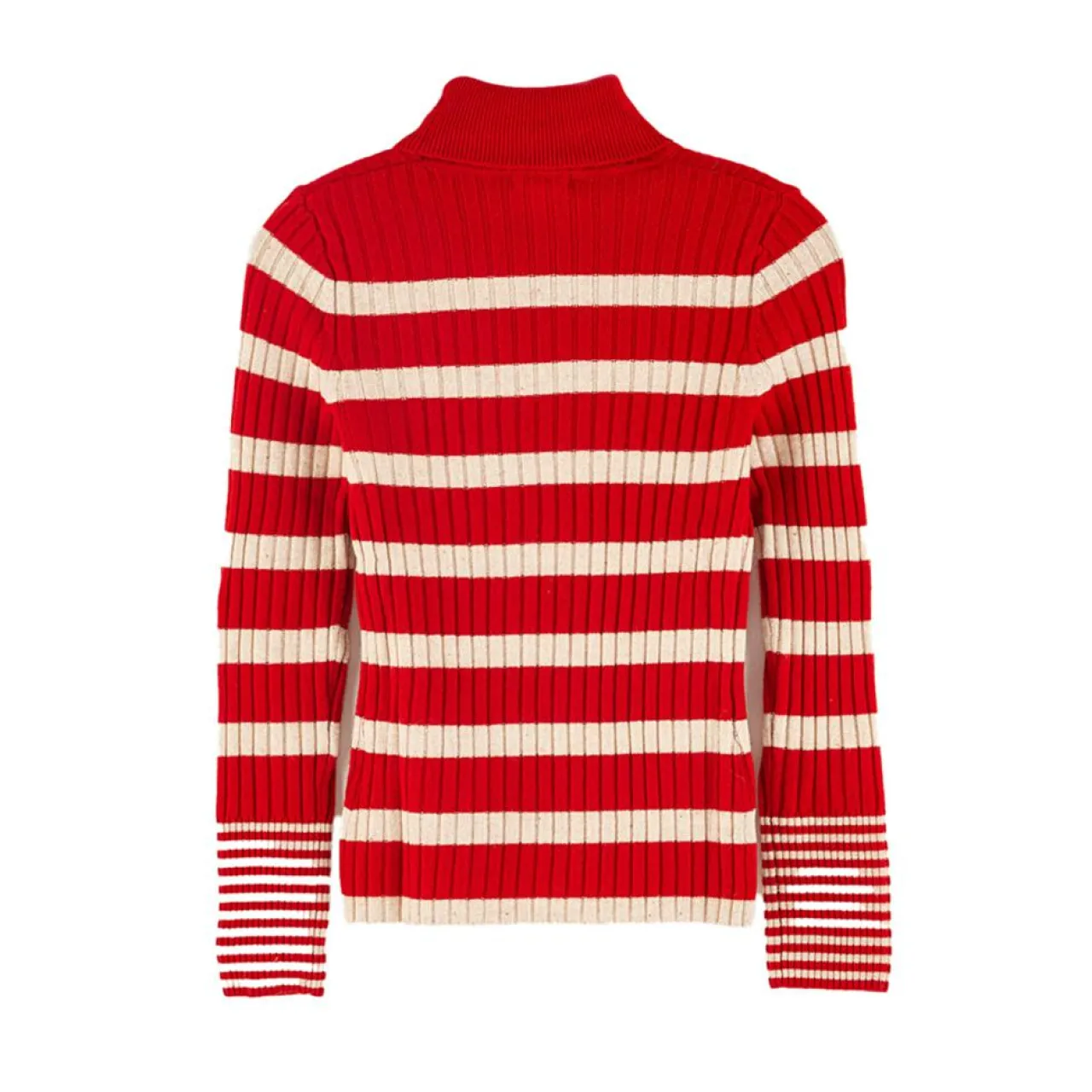 Pull slim à col montant en laine mérinos rouge avec rayures brillantes
