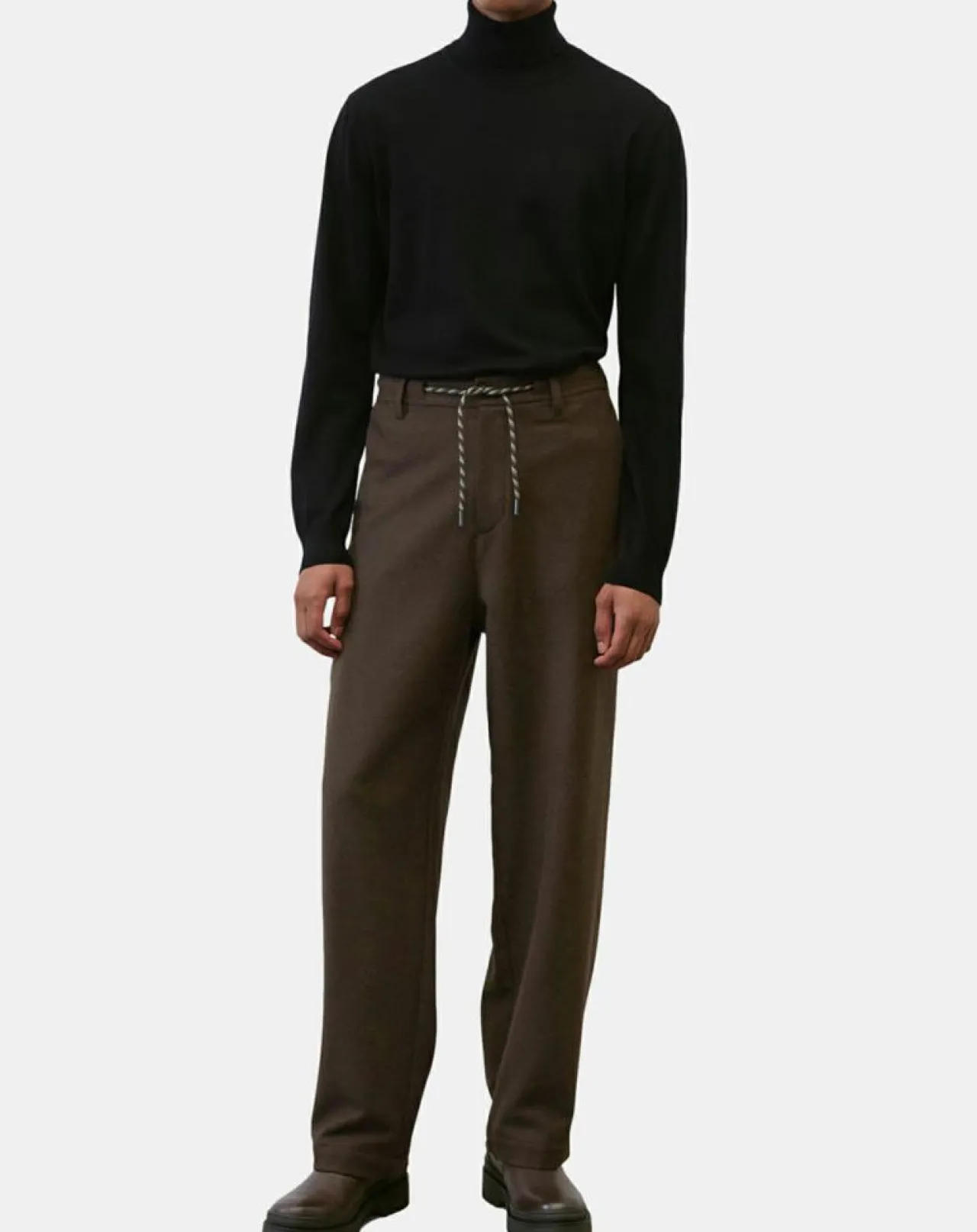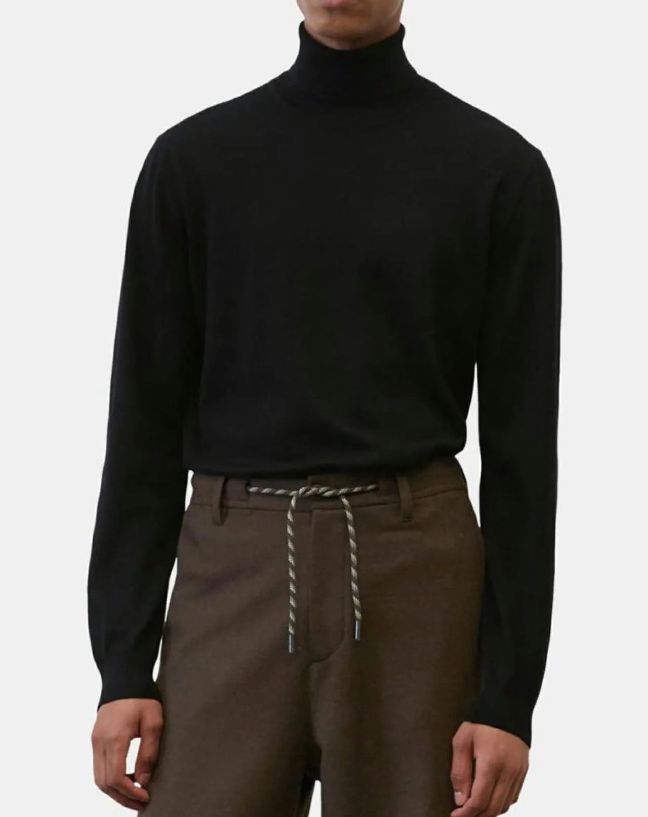 Moelleux, masculin et facile à assortir : le pull-over haut de gamme à col roulé en pure laine mérinos vierge de la meilleure qualité.