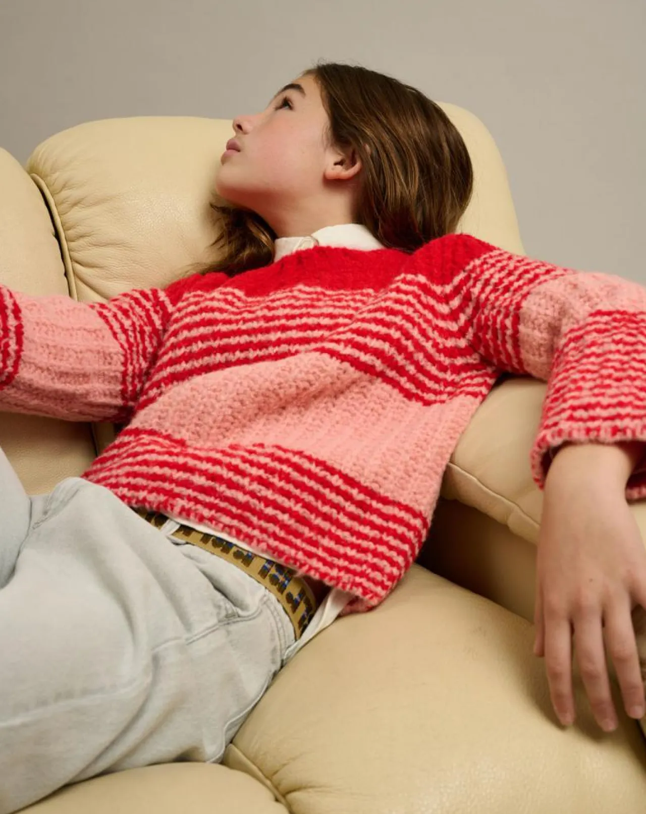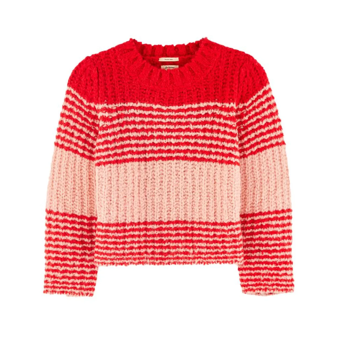 Pull rayé rouge à coupe ample tricoté en côte perlée